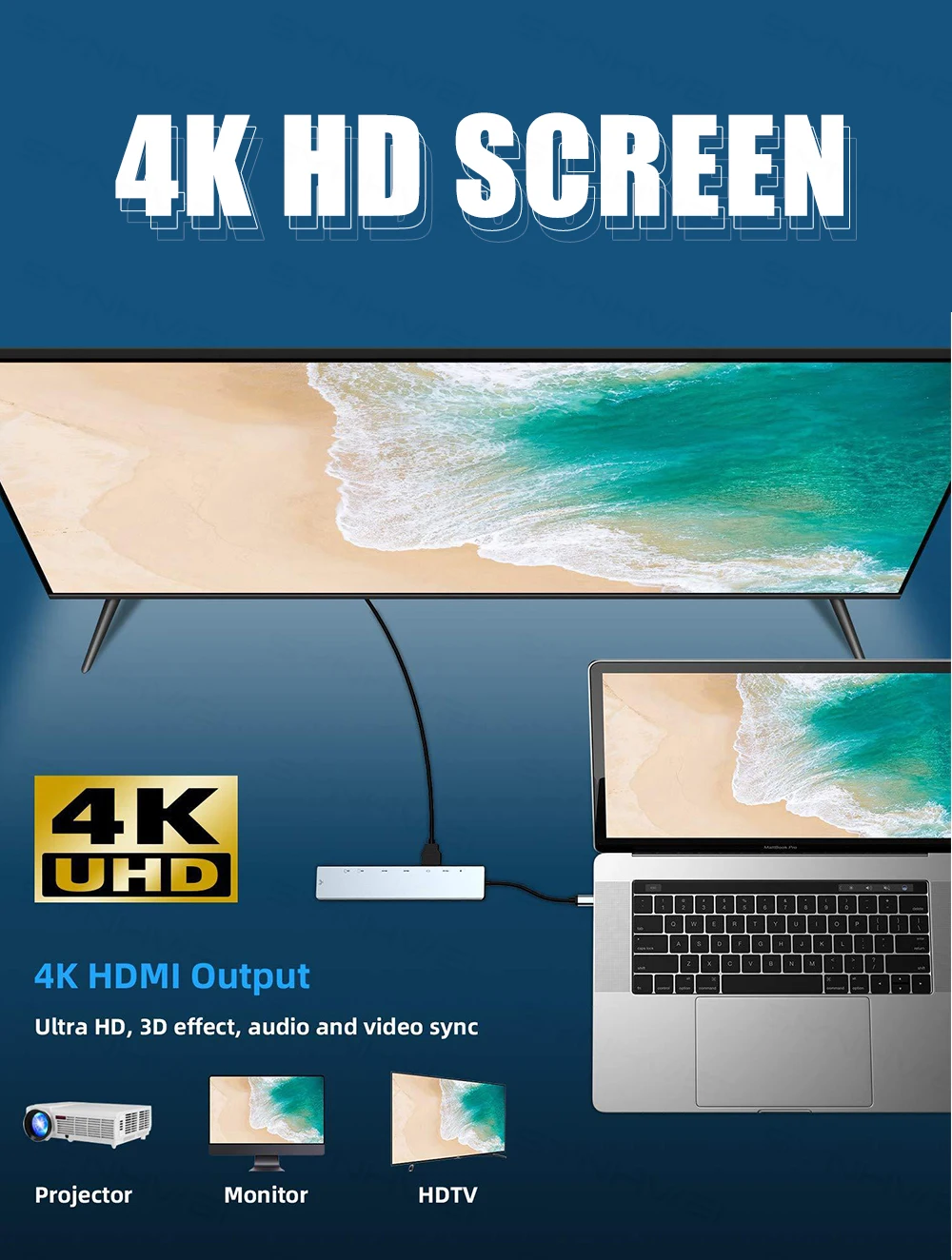 HDMI port support 4K 30HZ, which can perfectly mirror or extend your screen to HDTV, monitor, or projector