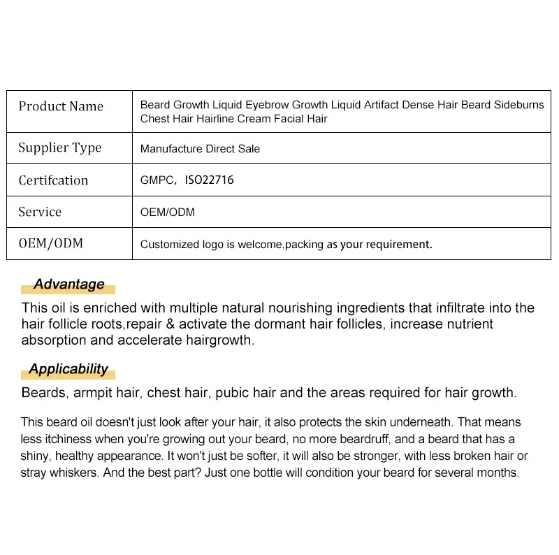 3. Подходит для всех типов кожи, это масло для роста бороды не только для улучшения роста бороды, но также может использоваться в качестве масла для бороды и кондиционера для ежедневного ухода за бородой.