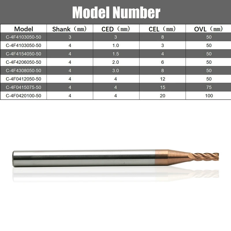 (1). Тип резца гравера:4 Флейта Торцевая мельница металлический фрезерный станок с ЧПУ для стали.