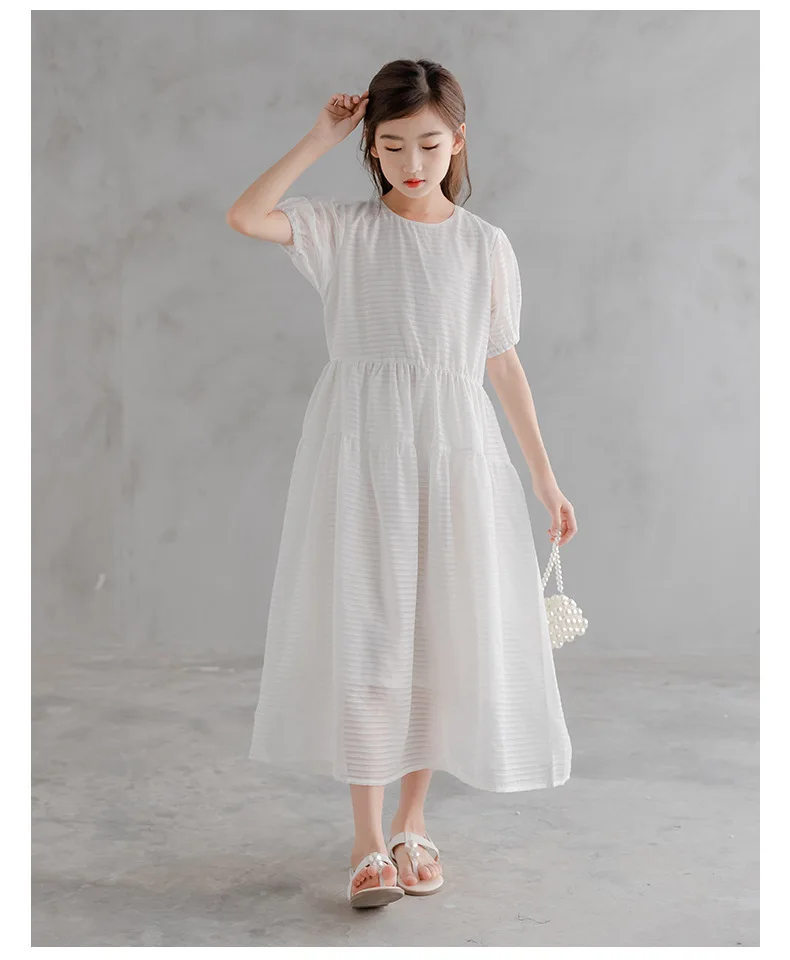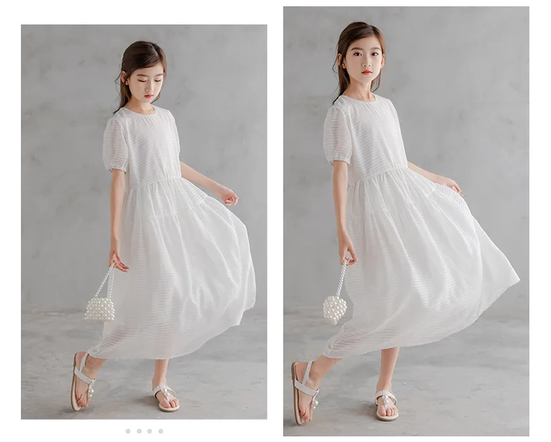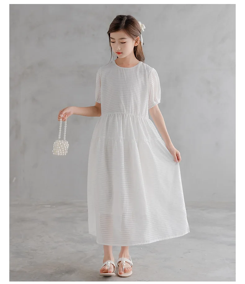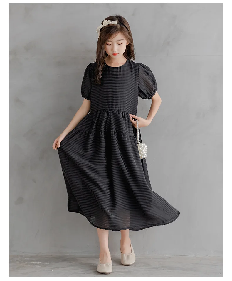 Весенне-летнее шифоновое макси-платье для девочек-подростков Детский костюм, одежда повседневные свободные длинные платья для маленьких девочек 9, 12, 14, 15, 16 лет