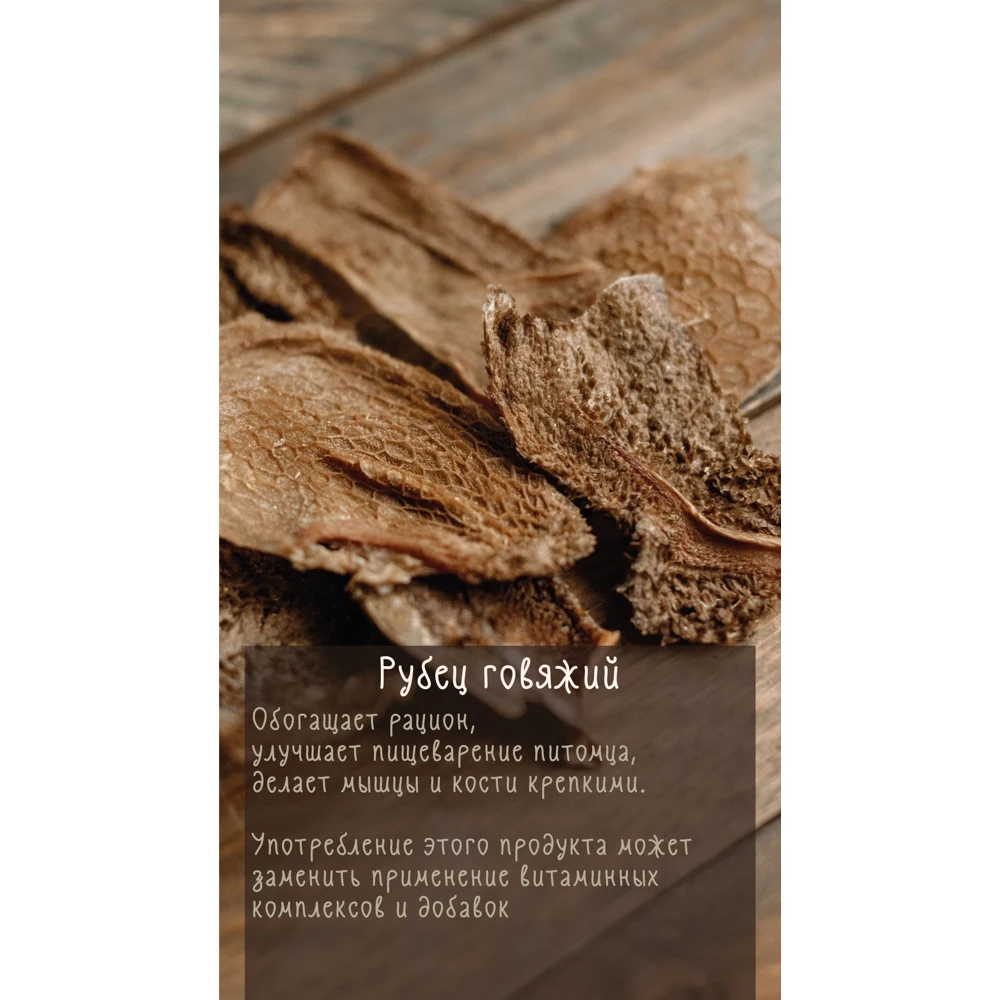 Аннотация | Говяжий рубец обогащает рацион, улучшает пищеварение питомца, делает мышцы и кости крепкими. Употребление этого продукта может заменить применение витаминных комплексов и добавок. |
