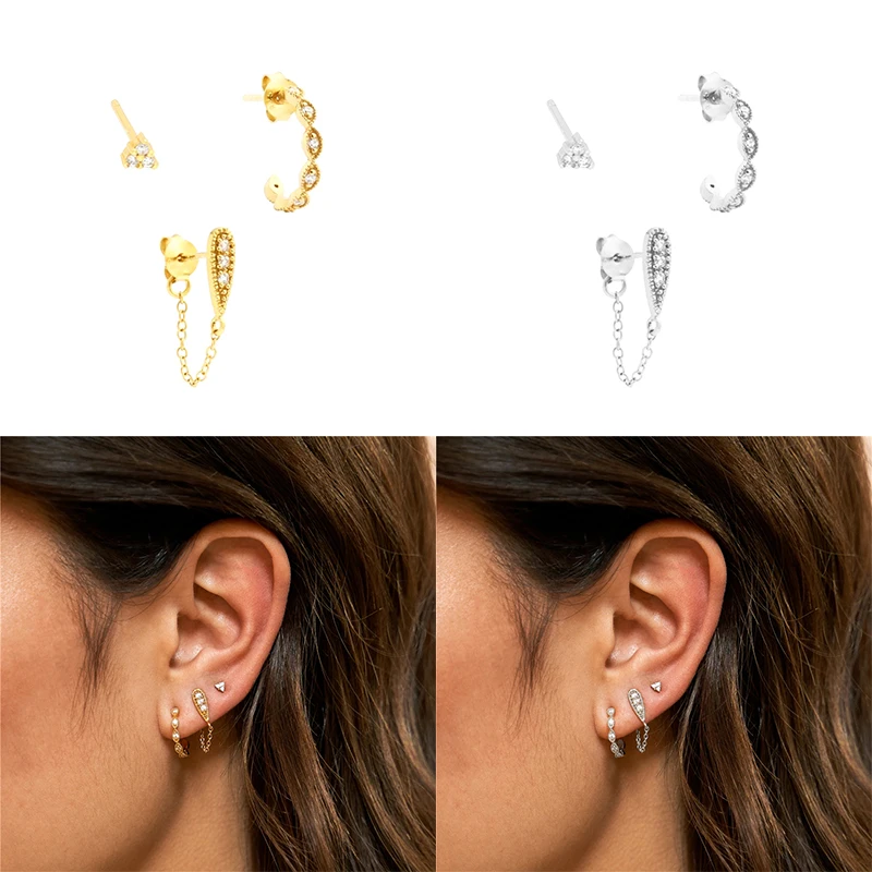 CANNER 3 шт./компл. Pendientes Brincos зеленый циркон серьги гвоздики для женщин девочек корейские Инс серьги Свадебные пирсинг ювелирные изделия