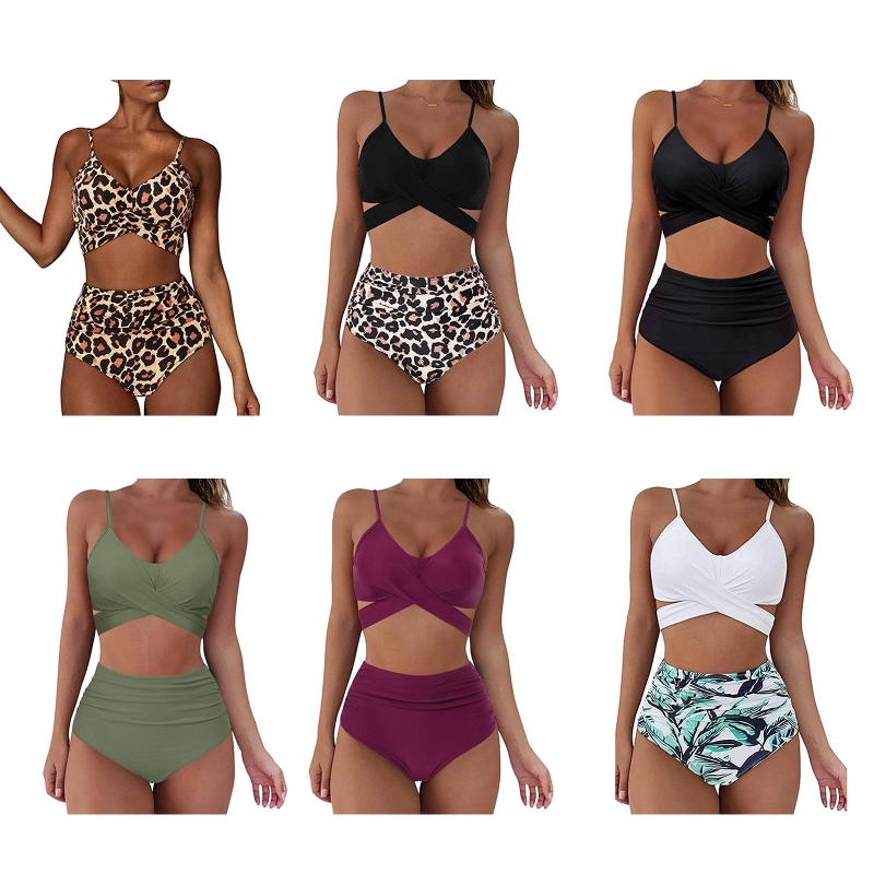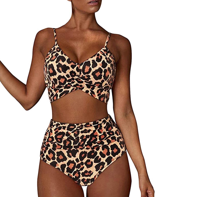 Женский комплект бикини с пуш-ап из 2 предметов, бюстгальтер с подкладкой, комплект бикини, купальник с высокой талией, купальник с леопардовым принтом, однотонный цвет, новинка 2022
