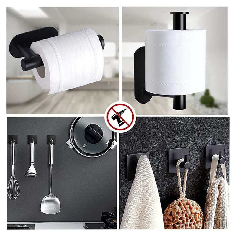 [Мощный самоклеящийся] держатель рулона унитаза и крючки для полотенец клейкая подложка является клейкой лентой, сильной адгезивностью и водонепроницаемостью. Нет риска падения держателя рулона унитаза, и его можно легко установить на любую гладкую поверхность. Грузоподъемность более 10 кг, пожалуйста, используйте держатель рулона унитаза через 24-72 часа.