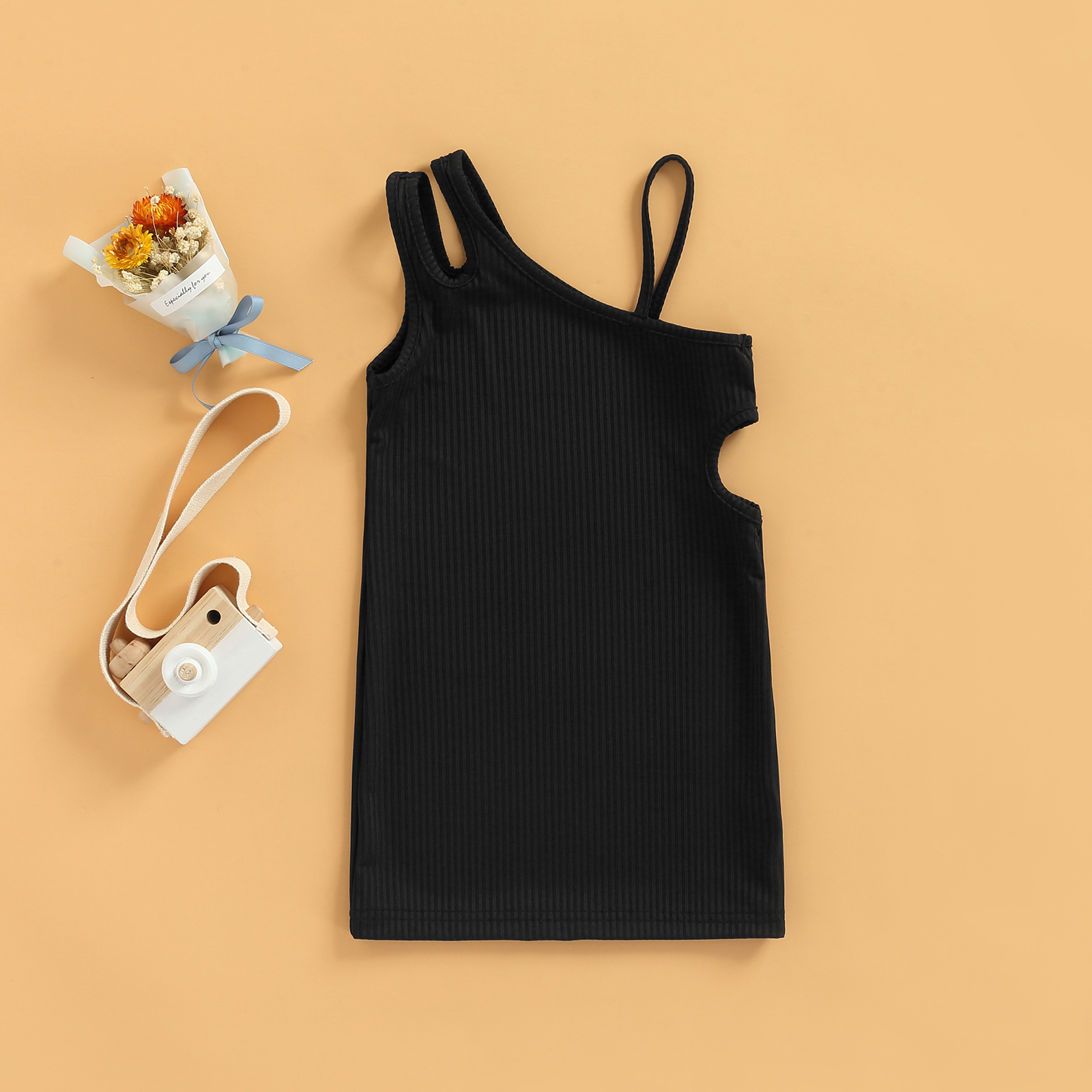 Платье без рукавов для маленьких девочек; Однотонное платье с наклонным плечом; Платье в рубчик с вырезами