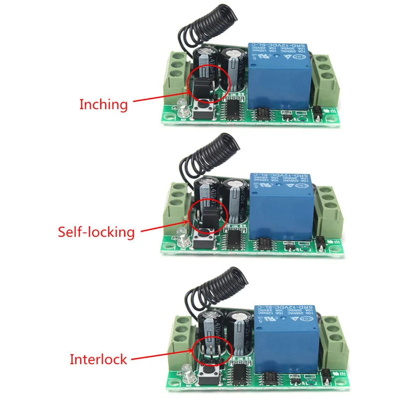 1. Пробежка: Нажатие одной кнопки работает. Ослабьте палец на одной и той же кнопке. (нужен Один канальный переключатель и одна кнопка дистанционного управления)
