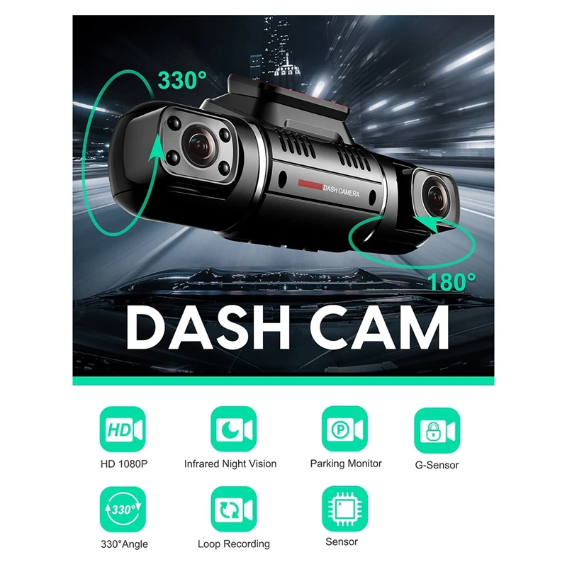 [2 CHANNEL DASH CAM] Simultaneous recording with Super High-Resolution Full 2K Lens, Is the complete package Front and Rear camera, which records video at 1080+1080P. 330°Super Wide Angle Ultra-wide field of view reduces the blind spots and captures more details, delivers clearer video images, and replays the key moment even when high-speed driving.