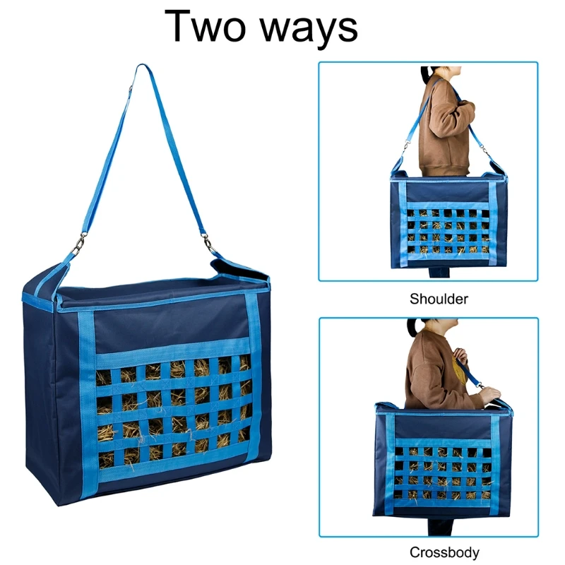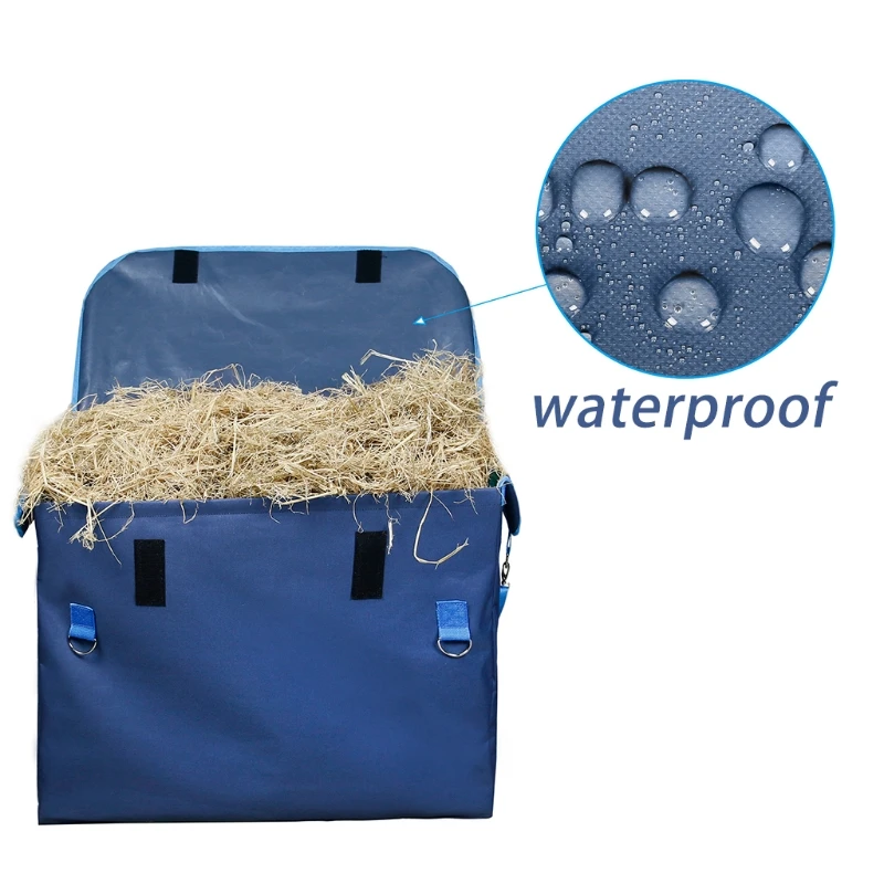 MULTI USE BAG: Made of durable 600D oxford cloth. Great for storing hay or straw. Not only for horse, but also for mules, chickens, rabbits, cattle, sheep, alpacas, llamas, and other livestock.