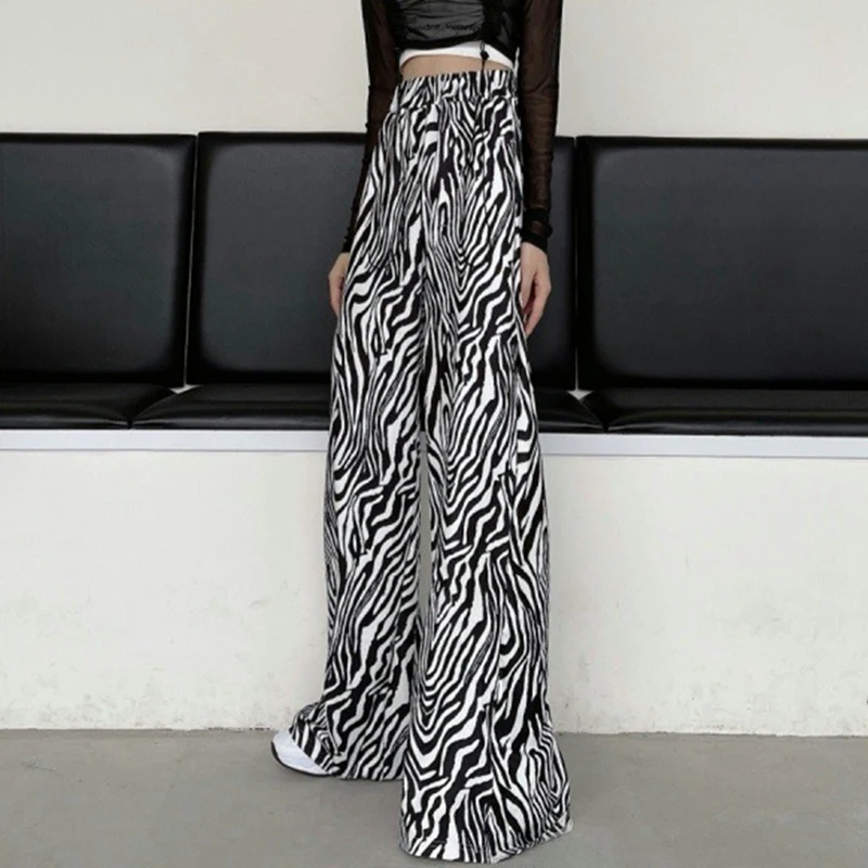 Женские черно-белые прямые брюки с принтом зебры Y2K Harajuku, повседневные брюки с низкой талией, уличная одежда