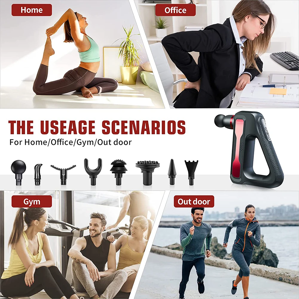 【Точный глубокий массаж ткани 】: массажный пистолет эффективно снимает боль, боль и болезненность тела, отправляя импульсы давления, которые проникают глубоко в мышечную ткань, эффективно улучшив диапазон движения, гибкость, И стимулирование кровотока.
