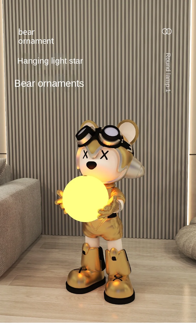 Современное искусство креативная гостиная Большой пол мультфильм Медведь Статуя крыльца лампа украшение дома статуя ручной работы из смолы