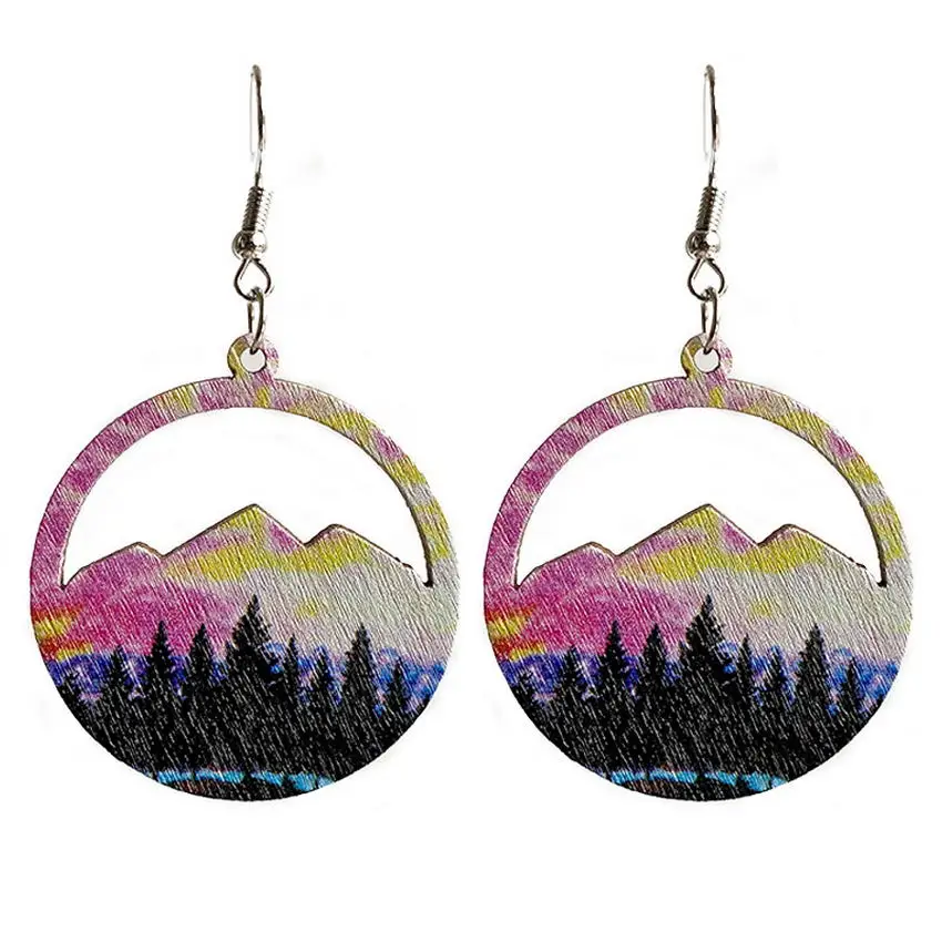 Mardi Gras серьги, уникальный подарок для нее, лазерная гравировка, лес, горы, дерево, серьги геометрической формы, деревянные легкие ювелирные изделия ручной работы