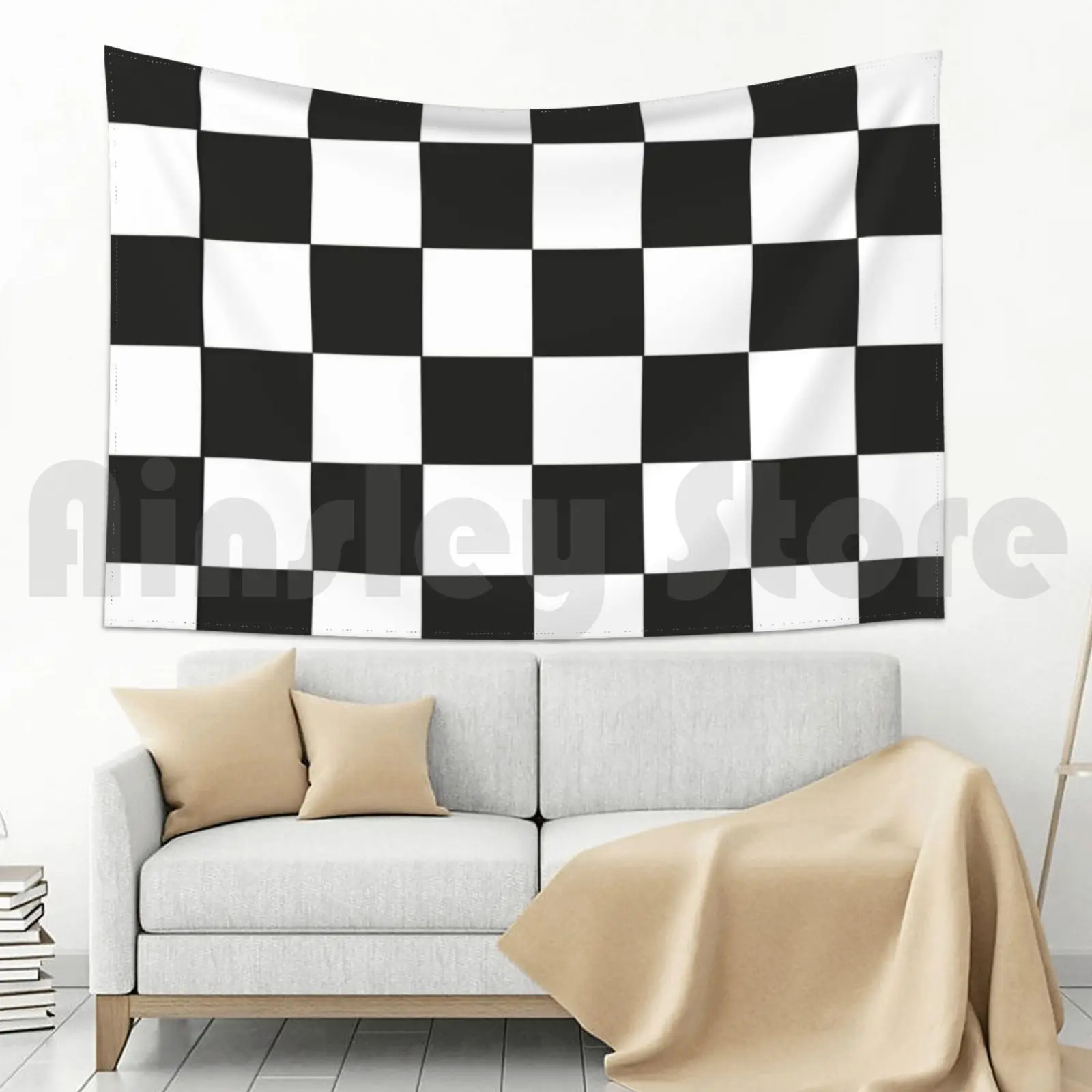 Гобелен с рисунком индийского слона черный белый стиль хиппи богемный Настенный