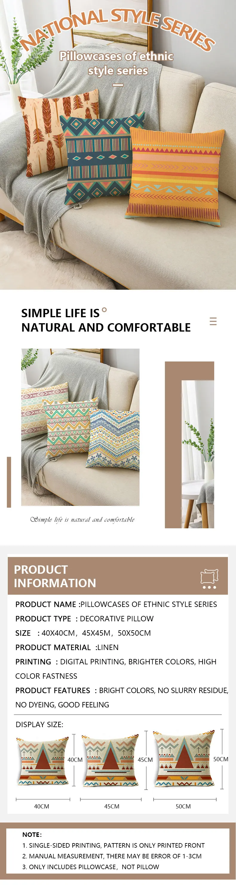 Богемные Ретро Геометрические узоры спальня гостиная наволочка 40*40 см/45*45 см наволочка