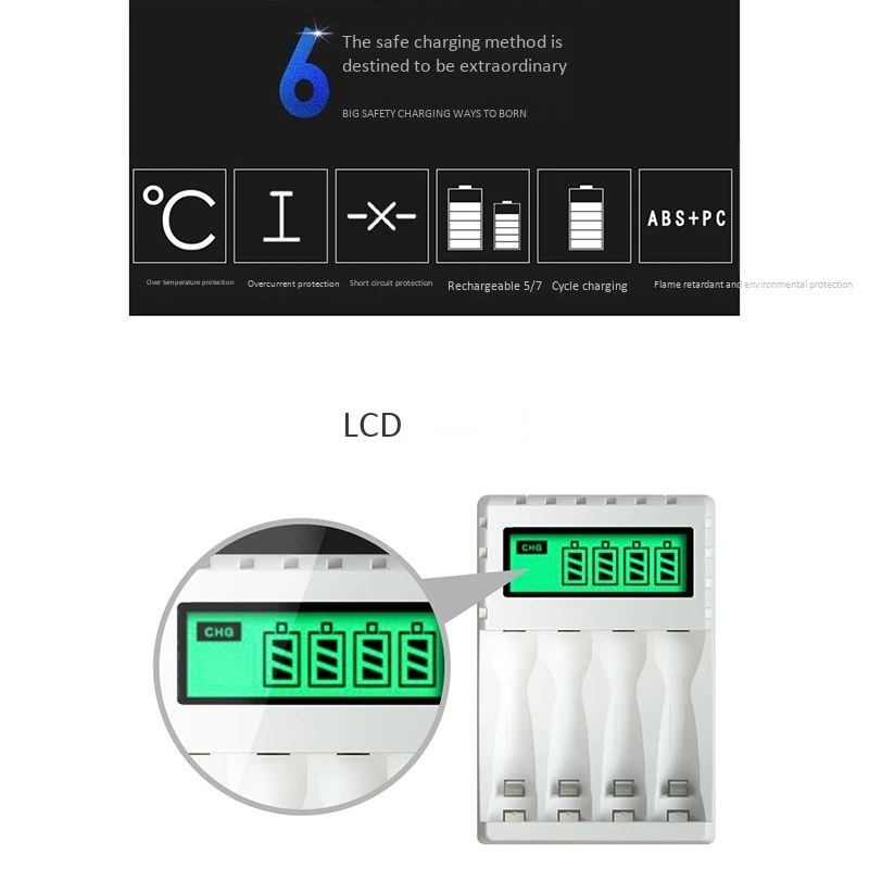 1. Это зарядное устройство может заряжать 1-4 шт. AA/AAA Ni-mh/Ni-Cd аккумуляторы, ЖК-дисплеи.