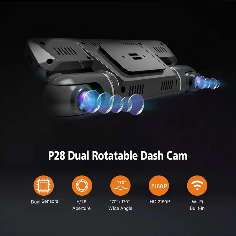 Full HD Двойная камера-фронтальная и каютная камеры каждая запись 1080p @ 30 кадров в секунду/одноканальный 2160P @ 24 кадров в секунду (несколько вариантов разрешения). Обе Камеры полностью настраиваются вверх/вниз/влево/вправо до 330 градусов, чтобы вы могли запечатлеть вид спереди и весь салон. Каждая камера имеет широкий угол 170 градусов, который может достигать максимум 340 градусов практически без слепых пятен. 2,7 дюймов Большой ЖК-дисплей позволяет иметь более широкую и с украшением в виде кристаллов-clear view.