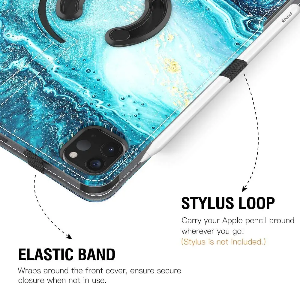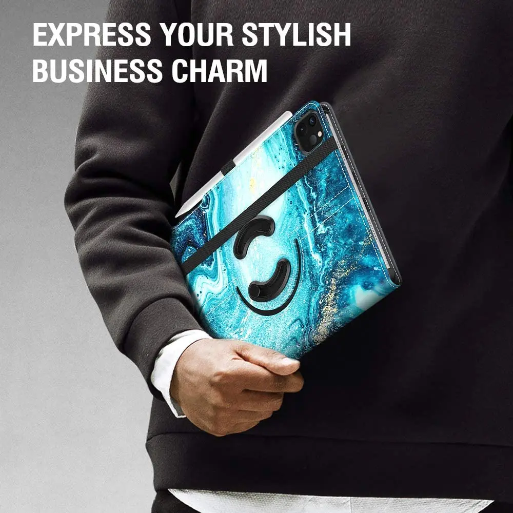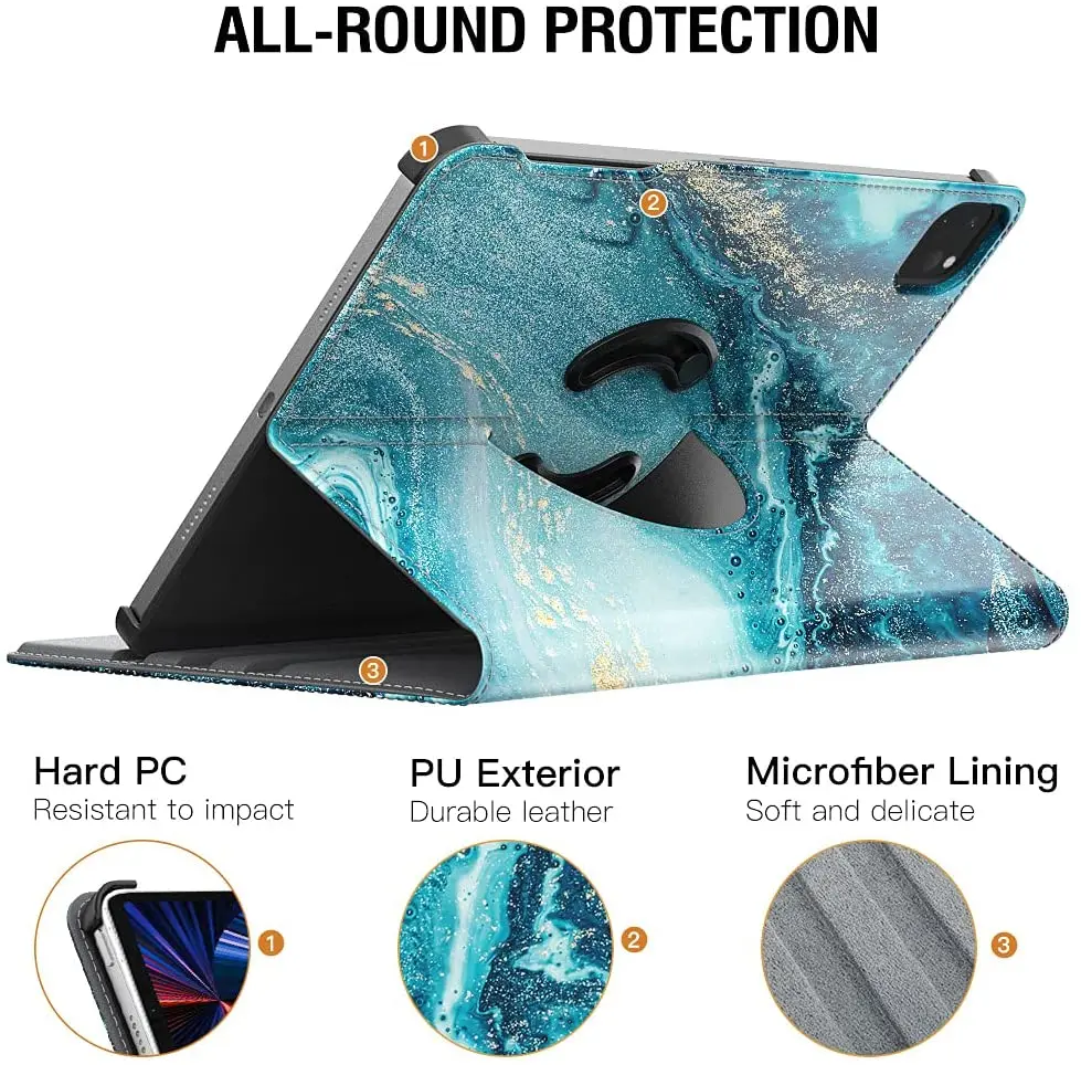【 Вращающийся на 90 градусов поворотный чехол с многоугольным пазом 】: воплотите вас в жизнь, используя опыт работы в портретной подставке под углом обзора. Легко Отрегулируйте ваш iPad под наиболее удобным углом и наслаждайтесь hands-Бесплатный просмотр и facetime.