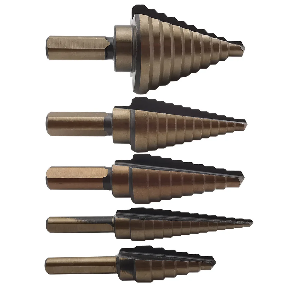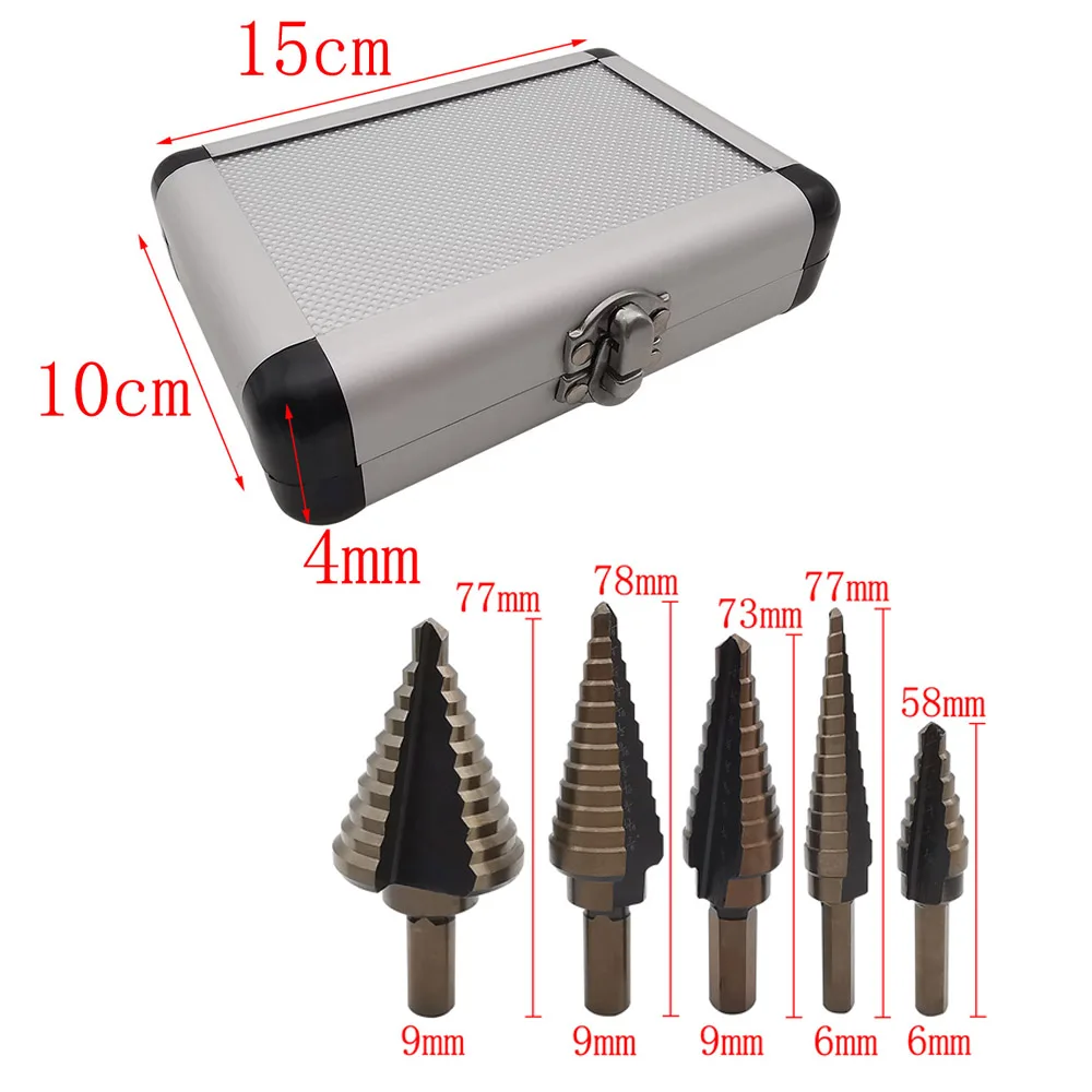 5 шт./компл. быстрорежущее титановое ступенчатое сверло буровые электроинструменты высокоскоростная стальная фреза для дерева конусное сверло с алюминиевым чехол