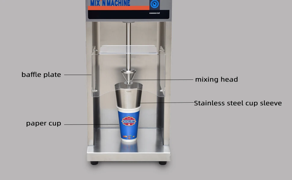 Смешивающая головка миксера мороженого и перемещайте его вверх, вниз, влево и вправо