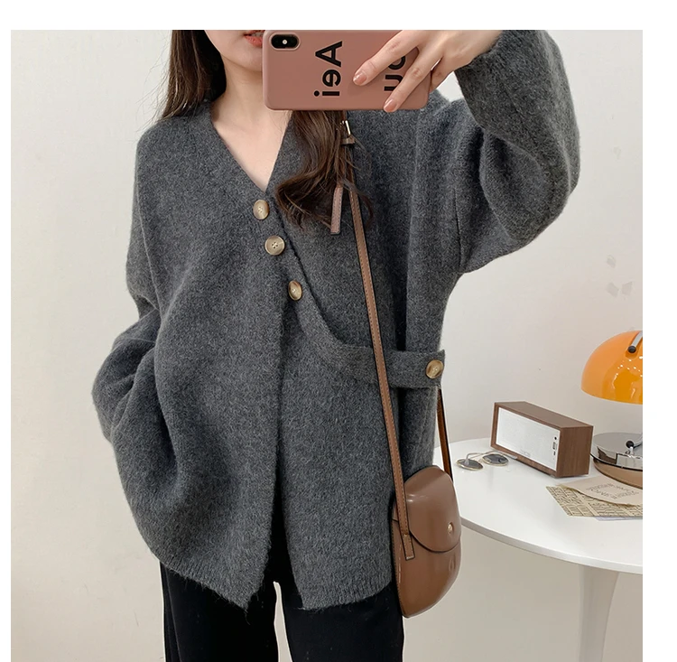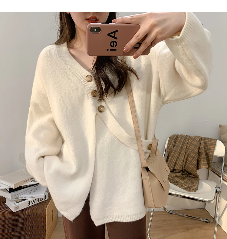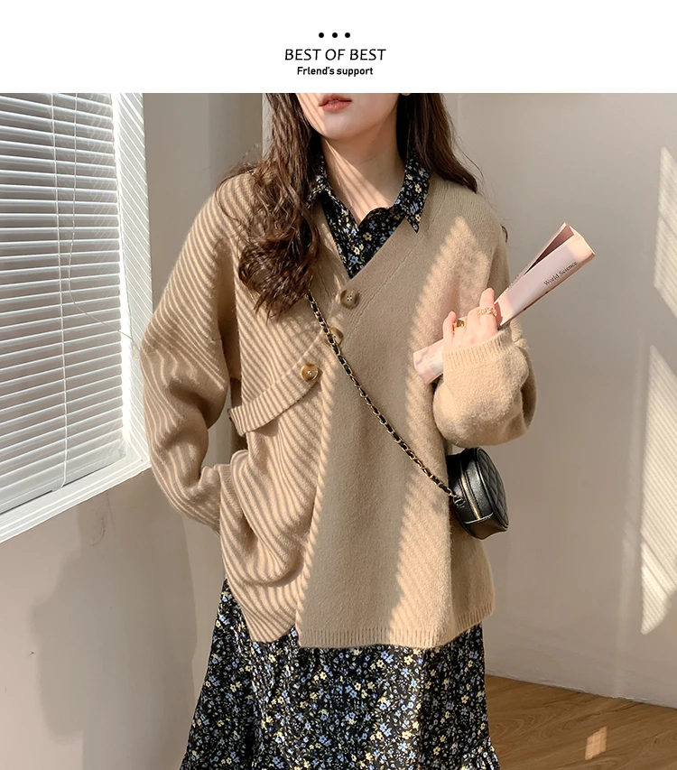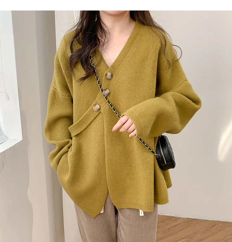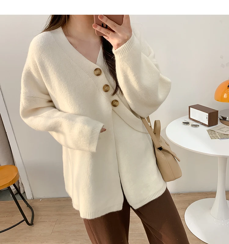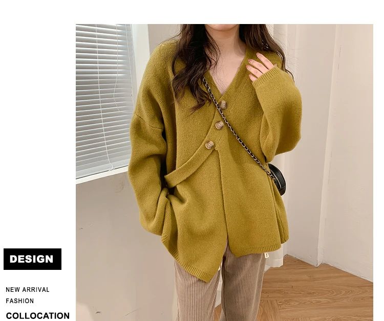 2022 женский свитер, вязаный кардиган, 2022, осень, v-образный вырез, однотонный, базовый, корейская мода, верхняя одежда, трикотажное пальто, YoYiKamomo