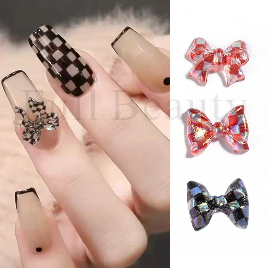 3D Стразы в клетку с бантом для дизайна ногтей милый маленький Медвежонок черно-красная белая лента кристаллы Сделай Сам японский Маникюр Аксессуары NLGZDJ