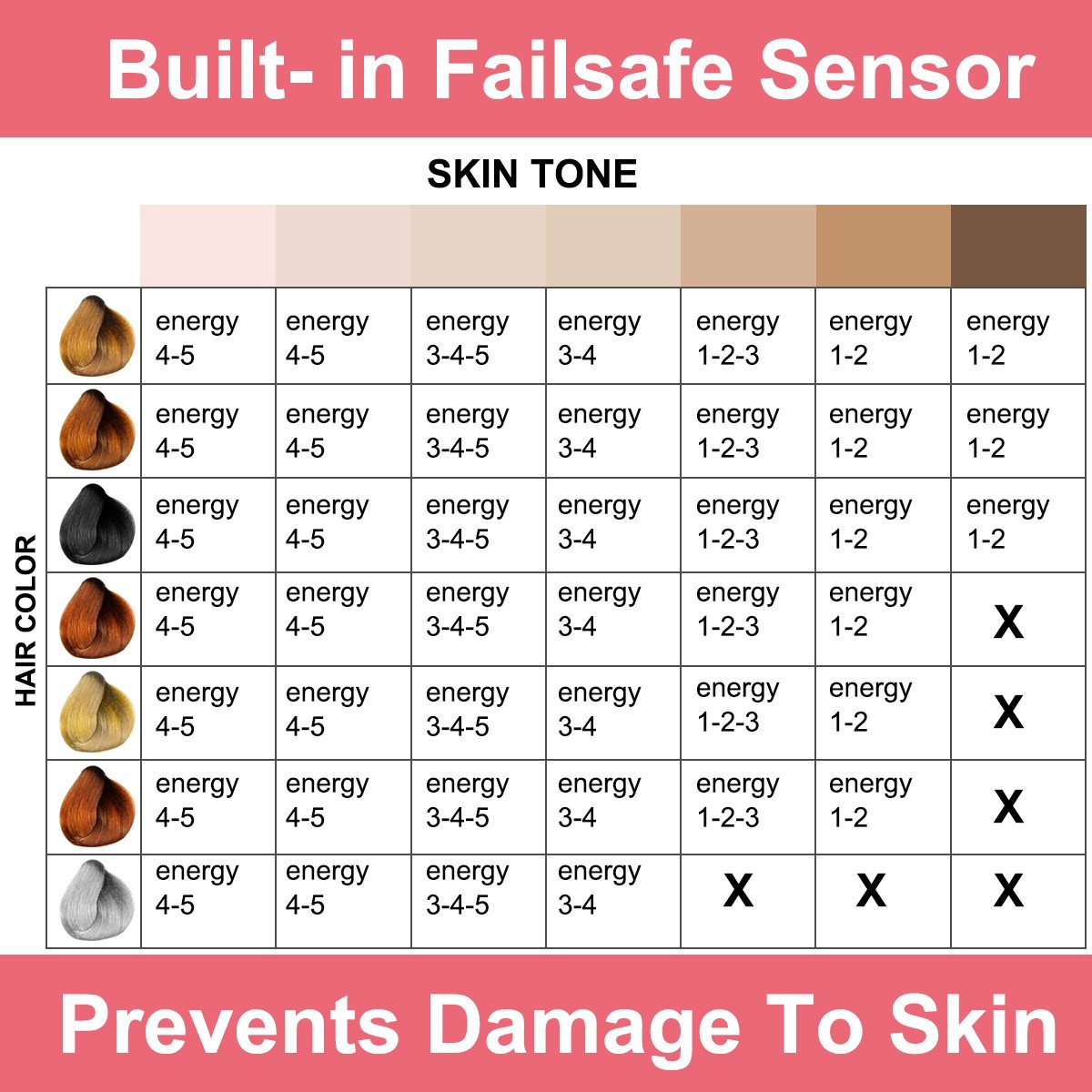 IPL лазерная эпиляция устройство подходит для кожи и шерсти темные круги черный желтый (например, черный, коричневый, светильник коричневый, желтый). Но не подходит для блонд, серых, белых или красных, меланин которых не поглощает светильник.