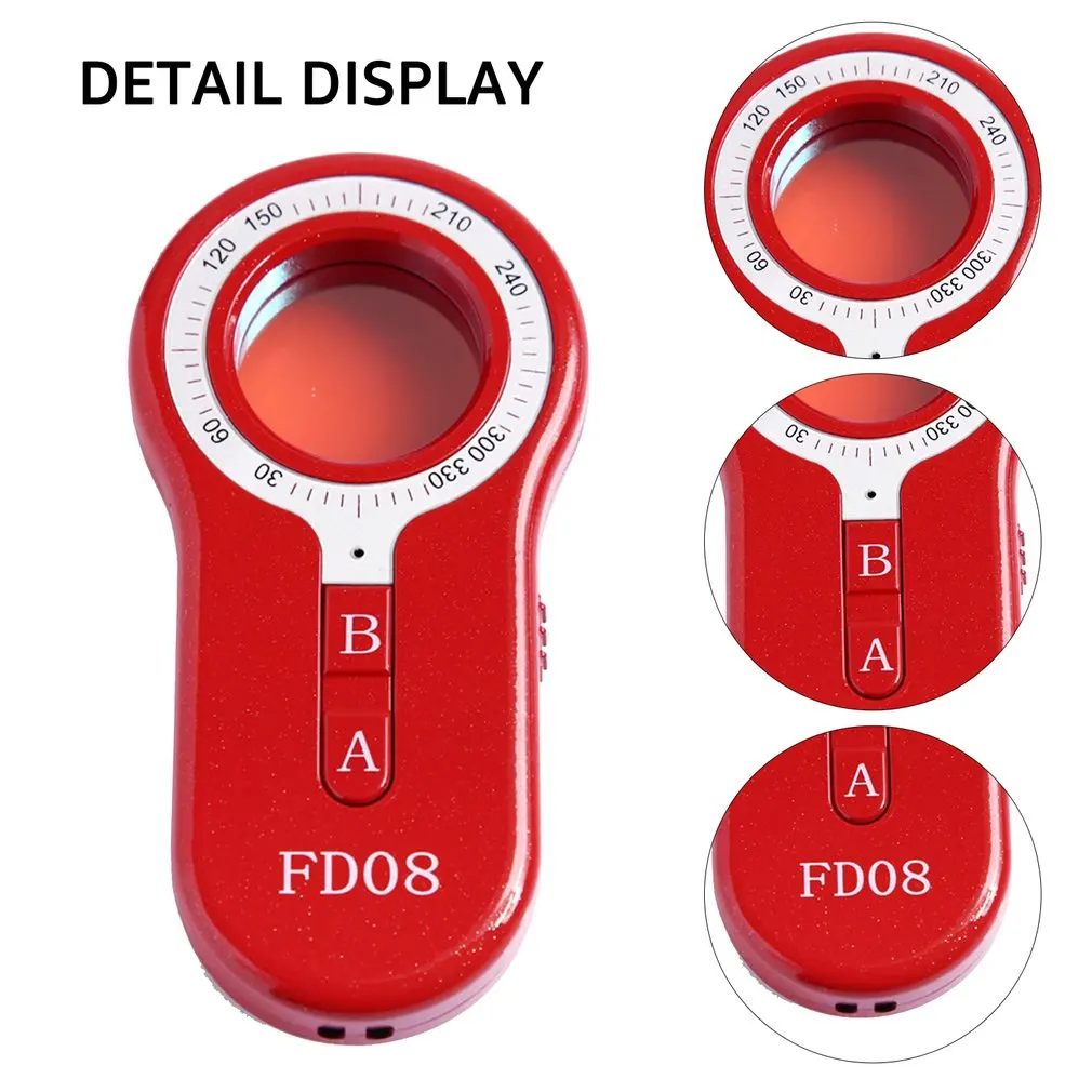 2. Инфракрасный Скрытая Камера детектор: вы можете использовать инфракрасный сканирование технологии обнаружения детектора 6 мигающий красный светодиодный фары могут обнаружить какие-либо шпионы Камера отснятый материал быстро и мгновенно. Когда красная точка появляется в видоискателе, есть скрытая камера.