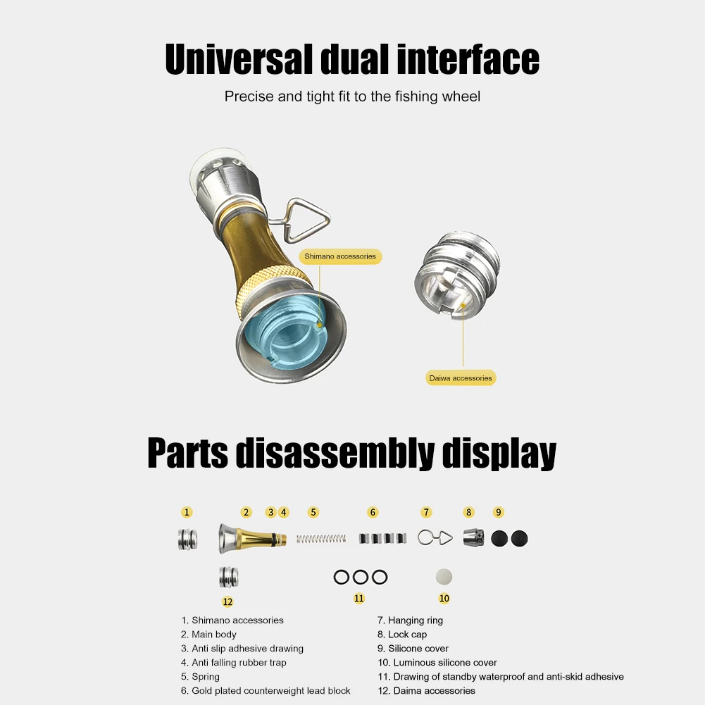 ![]() Универсальная спиннинговая Катушка для спиннинга с ручкой 48 мм Колесная Модифицированная катушка для Shimano Daiwa Характеристика: 1. Универсальный двойной интерфейс, универсальный для Спиннинговых колес Shimano Daiwa 2. Увеличьте стабильность и сбалансируйте центр тяжести, чтобы улучшить ощущения. Спецификация: Размер изделия: 48*18 мм/1,9 * 0.7in Материал изделия: металл Цвет: золотой, красный, серебристый Примечание: В связи с различиями мониторов и эффектами освещения реальный цвет товара может немного отличаться от цвета на фотографиях. Спасибо! Возможны отклонения в 1-2 см вследствие измерений вручную. ![]() 1 x подставка для спиннинга 2 x вал преобразования 1 x пружина Адаптер-2 шт. 3 х опорное кольцо 4 x Металлический противовес ![]() ![]() ![]() ![]() ![]() ![]() ![]() ![]() ![]() ![]() ![]() ![]() ![]() ![]()