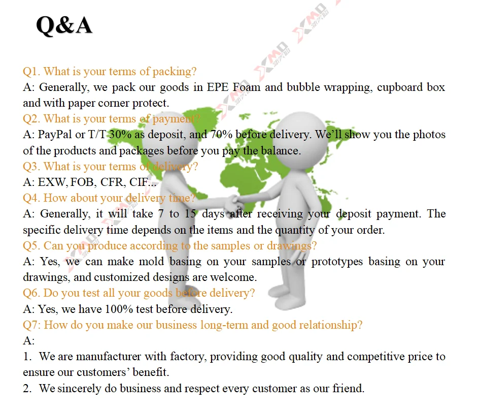 Условия оплаты | Через TT,Western Union, Alibaba онлайн, Paypal. Принимаем полную оплату заранее или 30% депозита и 70% баланса перед отправкой. |