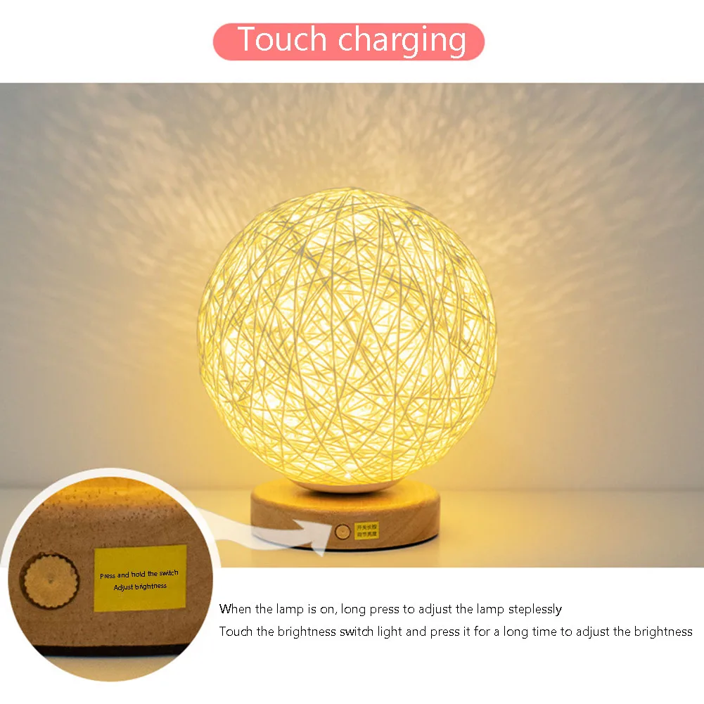 Спецификация:Материал абажура: ротанг Основание: твердая древесина Источник: светодиодный светильник 3 Вт Номинальное напряжение: 5 В Тип переключателя: Кнопка/затемнение Светильник Цвет: 16 видов цветов (с 24-мя клавишами дистанционный пульт) Регулировка яркости: 5 передач Размер изделия: 170*150*150 мм Длина кабеля: около 1,2 м Разъем: USB интерфейс (подключаемый внешний аккумулятор, мобильный телефон, зарядная головка, компьютер) Примечание: В связи с различиями мониторов и эффектами освещения реальный цвет товара может немного отличаться от цвета на фотографиях. Спасибо! Возможны отклонения в 1-2 см вследствие измерений вручную.