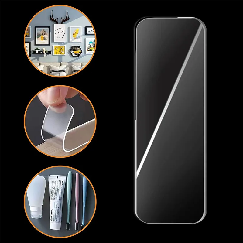 Изготовлен из новейший акриловый гелевый материал, наша прозрачная двухсторонняя лента очень прочная, прочная, простая в установке, не требуется никаких инструментов, мгновенное склеивание, отсутствие отверждения или сушки.