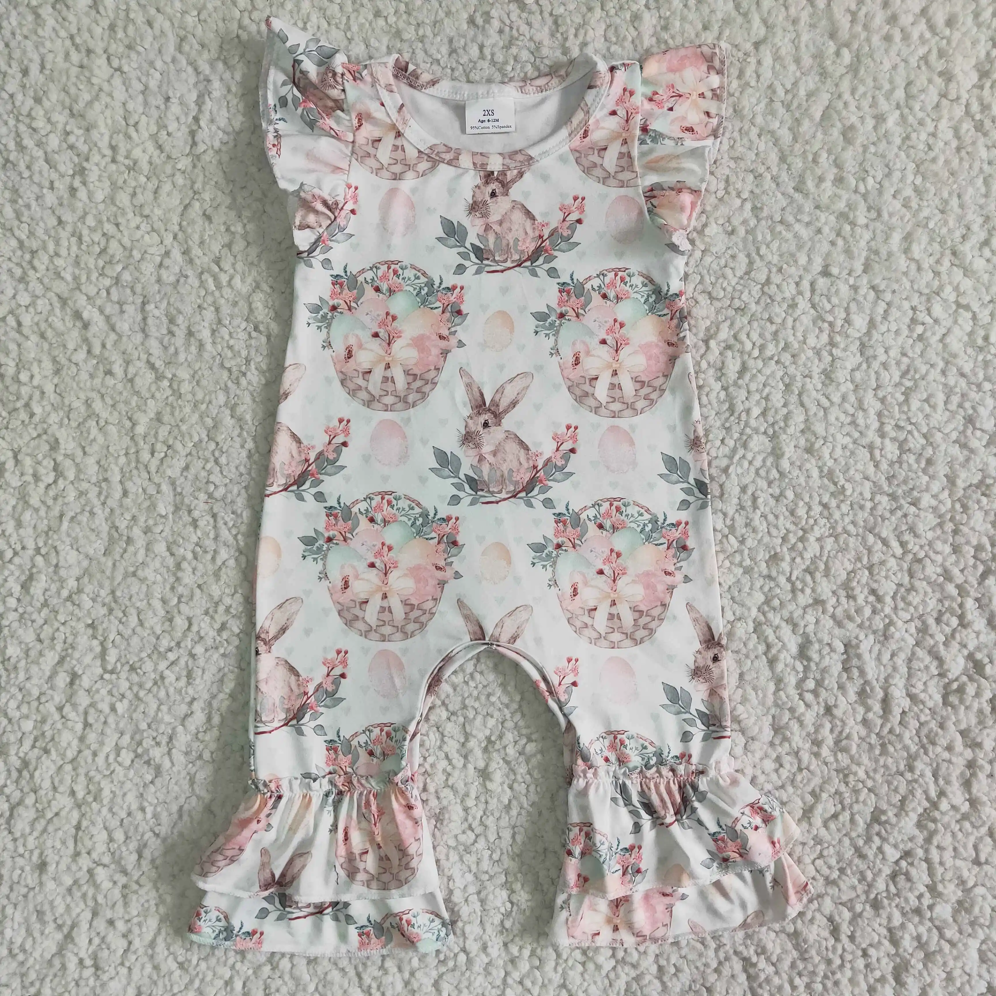 Лидер продаж; Цельный комбинезон с принтом кролика для маленьких девочек; Сезон весна-лето; Комбинезон для новорожденных; Пасхальный комбинезон; Дешевая цена