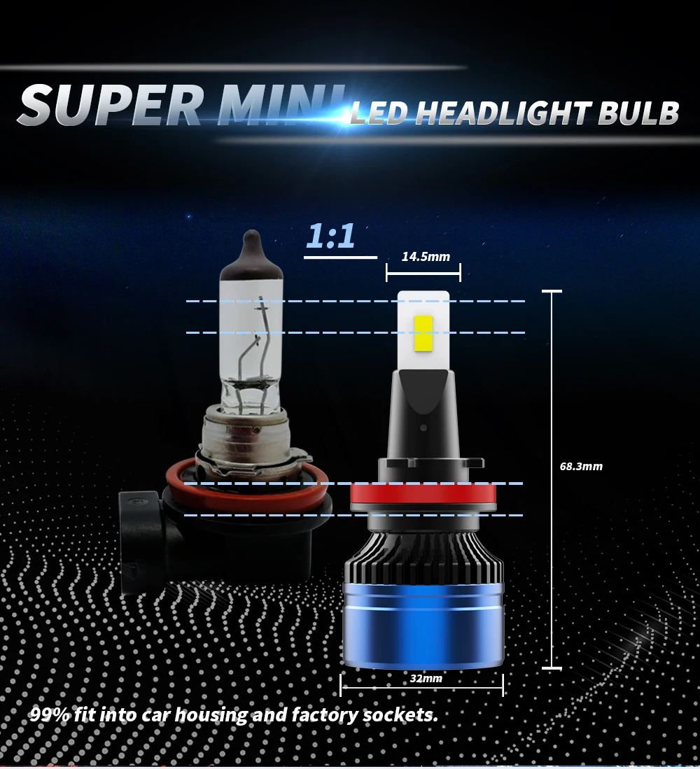 【 600% ярче галоген】высокая светоотдача CSP чипы, достигает до 4500LUX на лампу, что делает их самым ярким головной светильник s. Ультратонкая 0,04 дюймовая Медная доска уменьшена, что обеспечивает максимальный выход на светильник, отсутствие ослепления и ослепления встречного движения.
