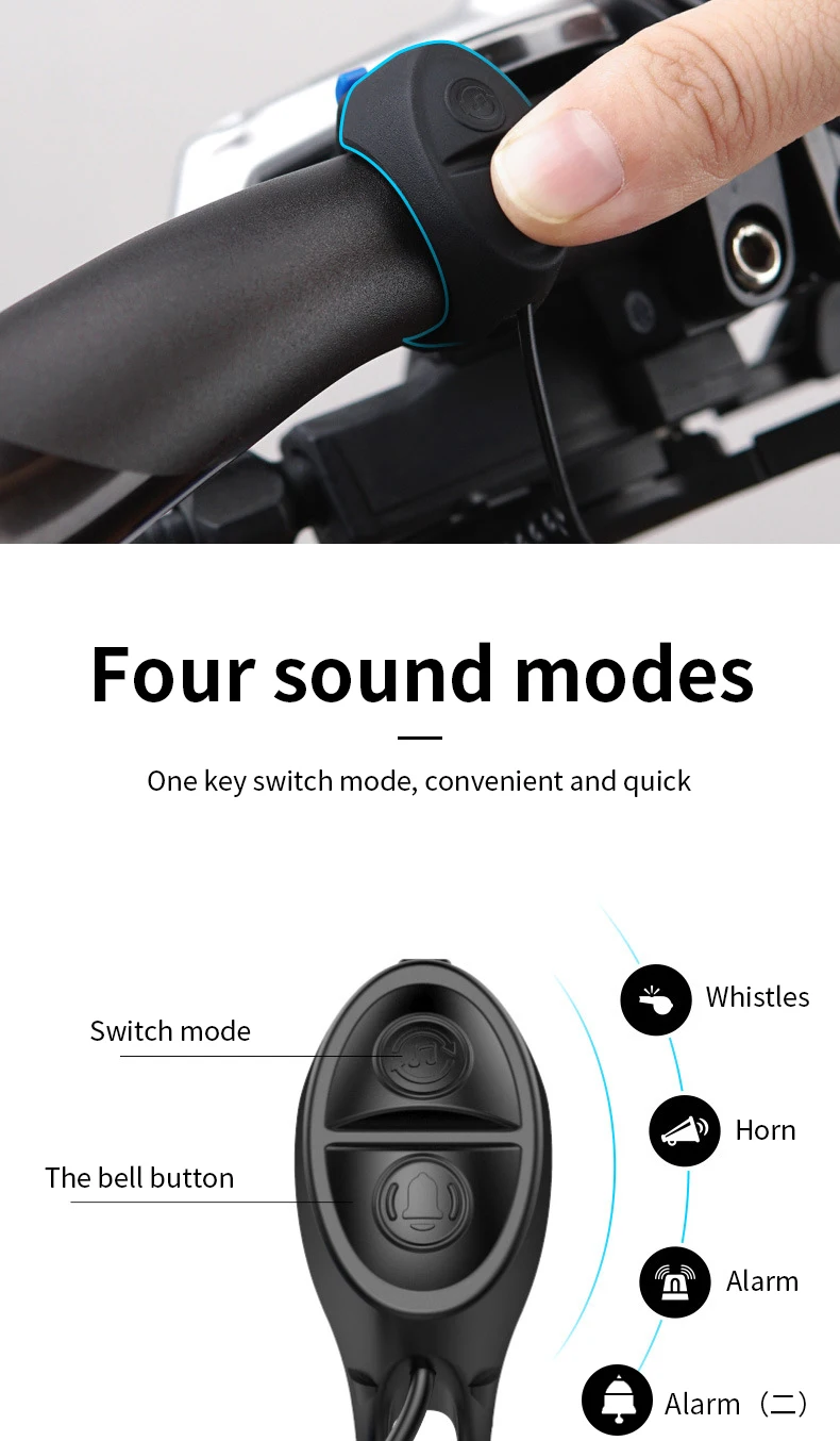 * 3. [регулируемый велосипедный Рог] наш велосипедный рог имеет один ключ, но 4 режима звука: свисток, время
