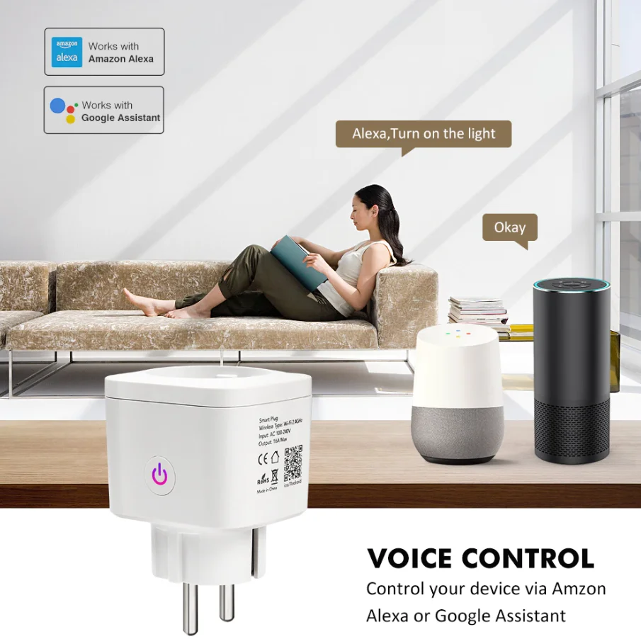 Умная Wifi вилка 16А с монитором питания, умная домашняя розетка ЕС, приложение Tuya голосовое дистанционное управление, совместимо с Alexa Google Home, не требуется концентратор