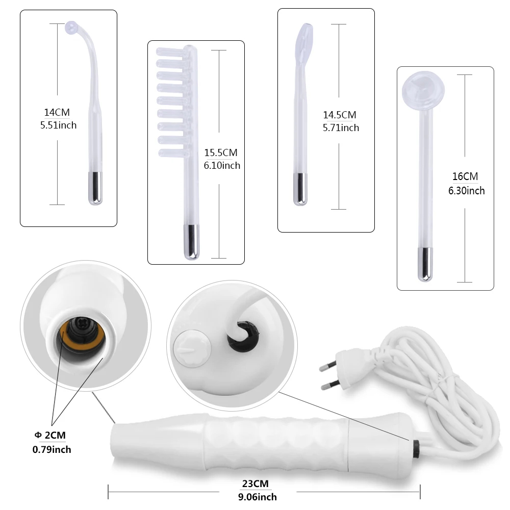 Высокочастотная Электротерапия является важным инструментом красоты. Это через стеклянную электродную трубку для получения высокочастотного тока и нанесения на кожу, таким образом, достигает результата лечения.Помогает успокоить нерв и имеет функцию анальгезии.Обладает функцией защиты от старения, морщин и подтягивания кожи.Улучшает секрецию, значение PH приводит к тому, что кожа склонна к нейтралитету.Ускоряет кровообращение и улучшает обмен веществ.Он производит Озон для стерилизации, может помочь заживлению ран и сдержать поры.Особенности:
