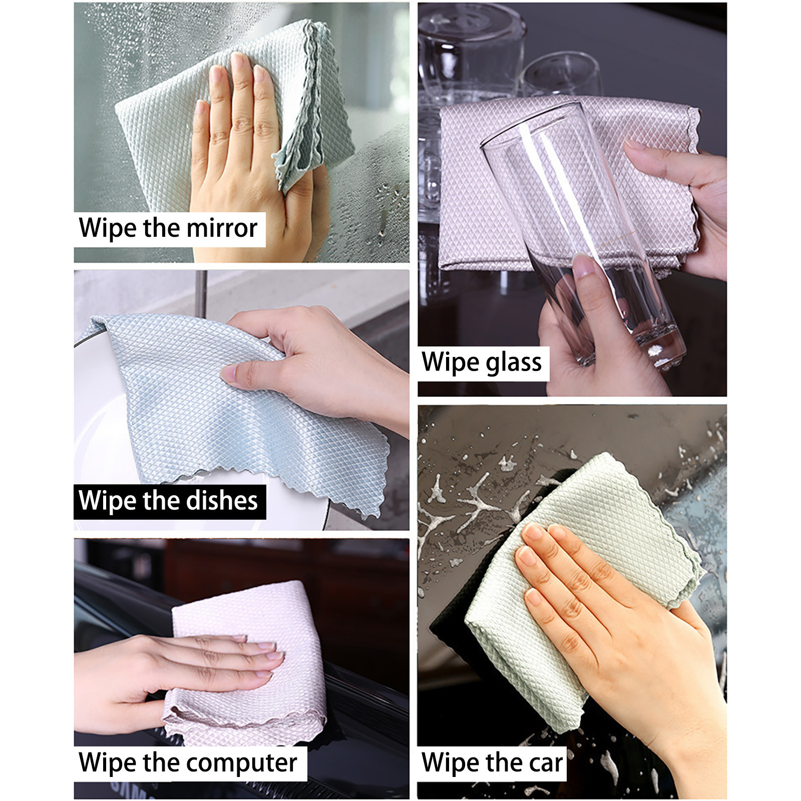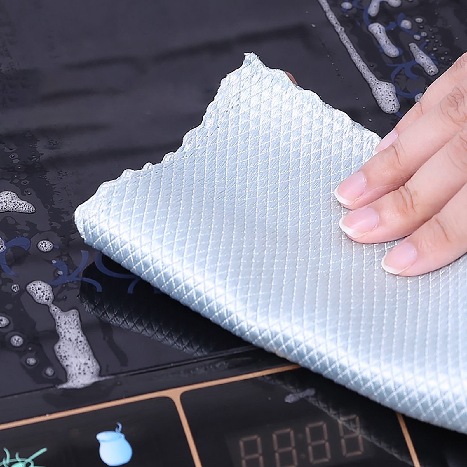 Уникальный дизайн: волнистые рыбьи весы, нановесы, очищающие тряпки, подходят для всех видов изделий из стекла и нержавеющей стали. Не царапает поверхность, высокая Чистящая способность и хороший эффект полировки.