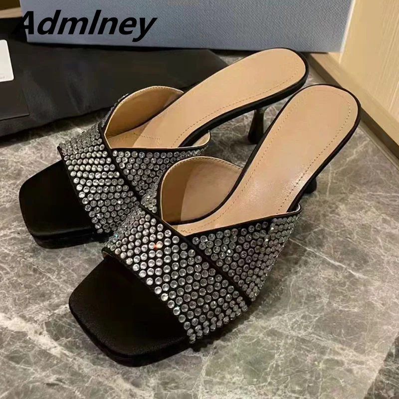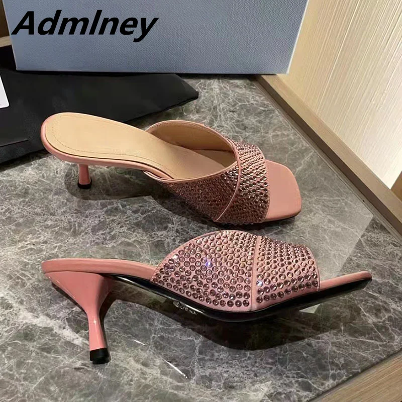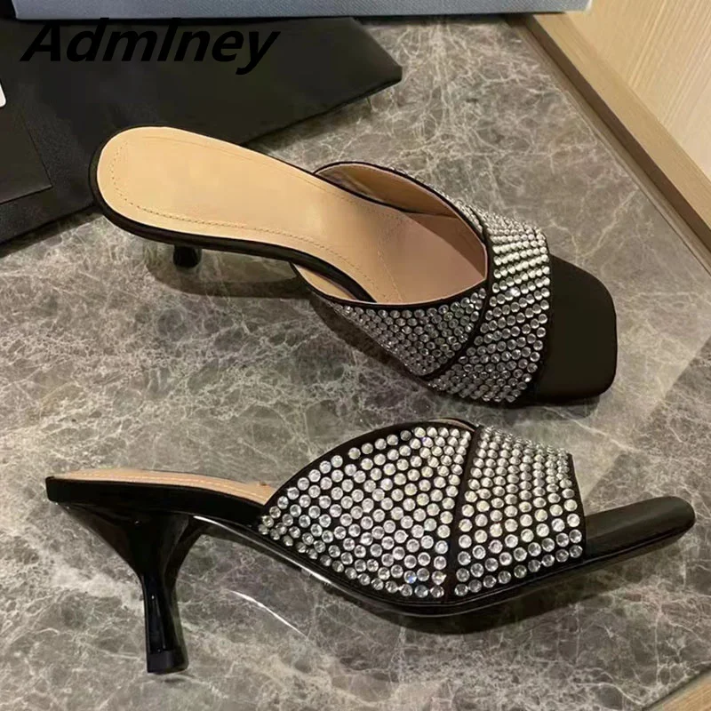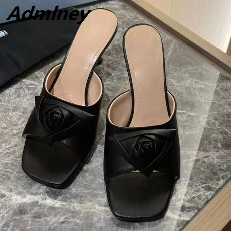 Новинка; Летние женские шлепанцы для подиума с украшением в виде цветов и кристаллов; Вечерние туфли на среднем каблуке с открытым носком и атласной розой; Блестящие танцевальные туфли с шипами и стразами
