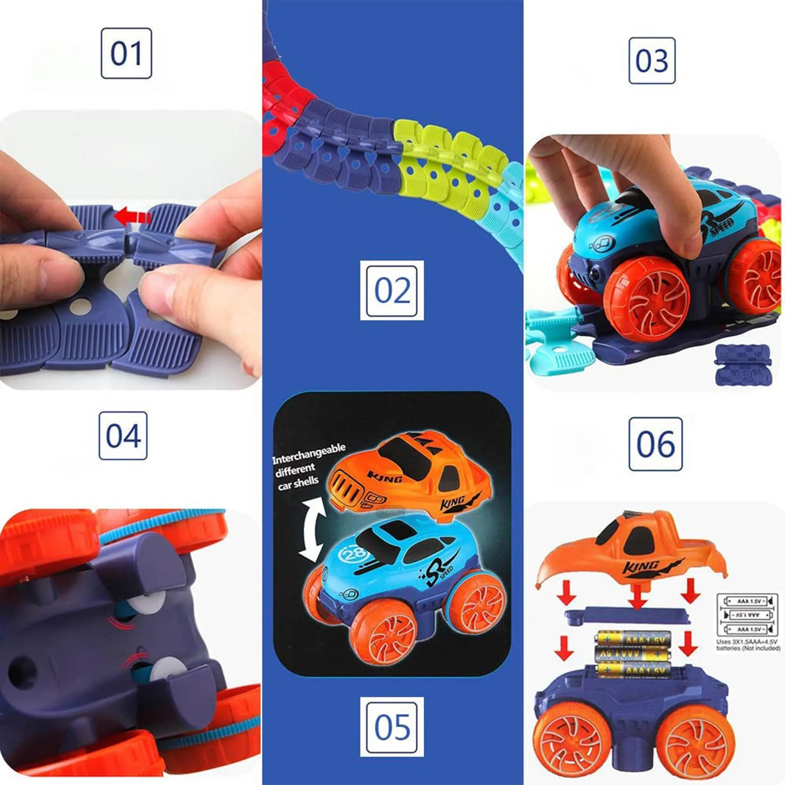 Набор треков гоночного автомобиля можно легко собрать, позволяя детям и малышам играть с бесконечным удовольствием. Отличные подарки для мальчиков и девочек, помогая им улучшить свое творчество, воображение, практические способности, логическое мышление, работу в команде и т. д.
