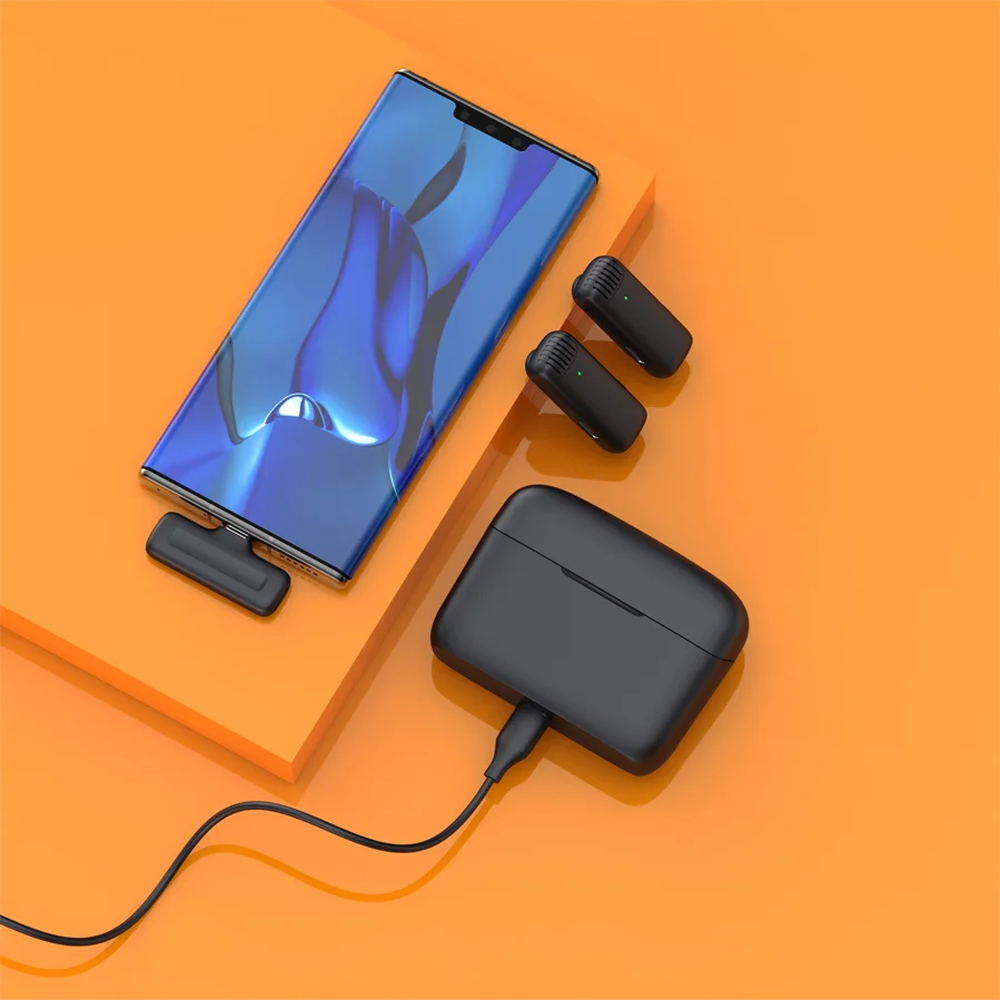 5. Как зарядить микрофон? Снимите защитную пленку с микрофона и положите ее в зарядный чехол для автоматической зарядки. Чехол для зарядки требует подключения usb-кабеля.