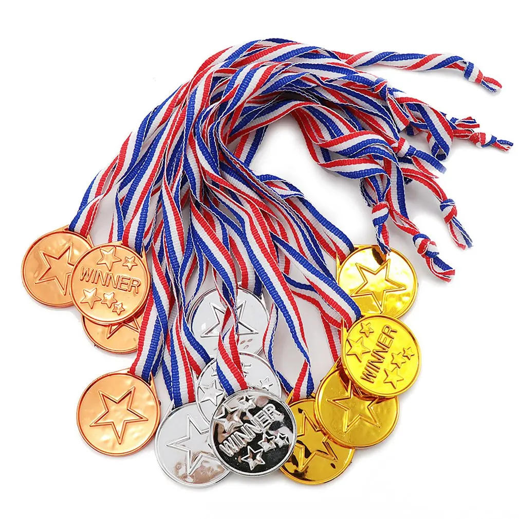 5. Подходит для большинства случаев: эти пластиковые медали с шейными полосками незабываются на спортивных мероприятиях или шоу талантов, карнавалах или соревнованиях по ночам, они очень подходят для участия в медалях, медалях победителей, детские спортивные медали и награды.