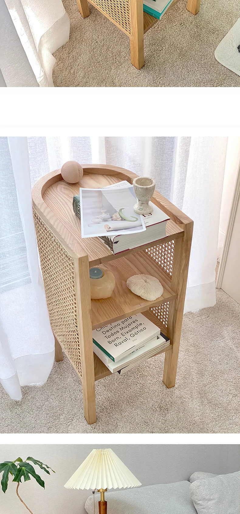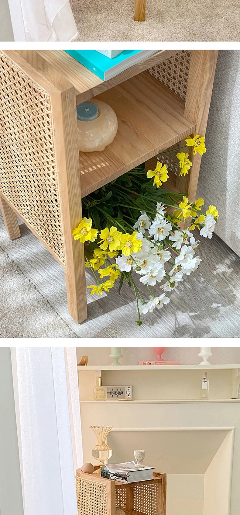 Тумбочка из ротанга из цельного дерева в стиле ретро, корейский боковой шкаф для спальни, журнальный столик, небольшая мебель