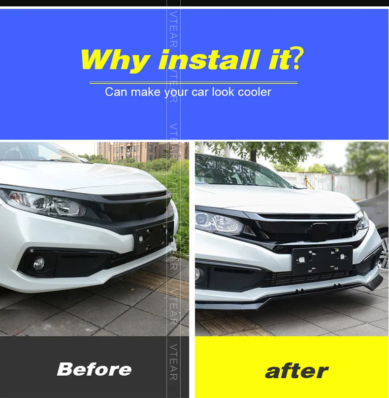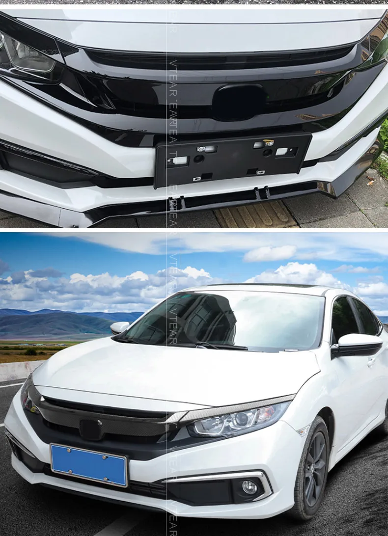 Накладка на решетку автомобиля Vtear, накладка на передний бампер, фирменный логотип, костюм против столкновений, внешние части панели для Honda Civic 10th 2016 2017 2018 2019 2020 2021