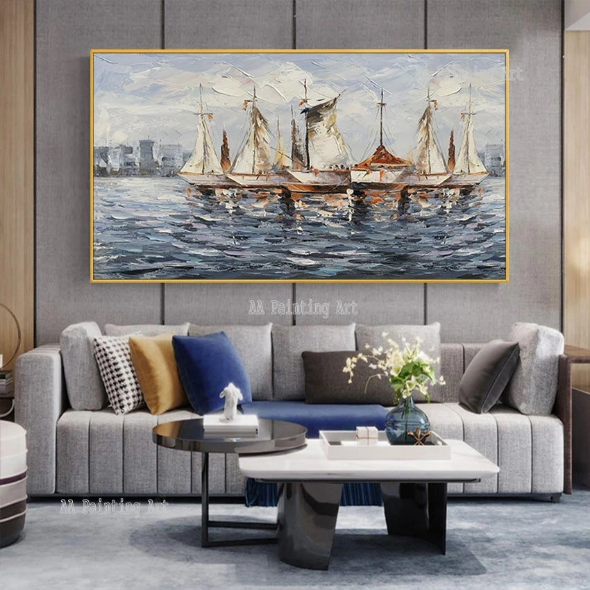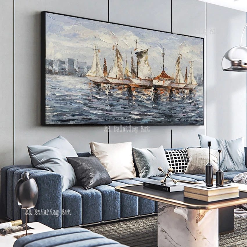 Украшение для гостиной, палитра, нож, парусная лодка, картина маслом, без рамки, ручная роспись, абстрактное украшение на стену, художественное изображение