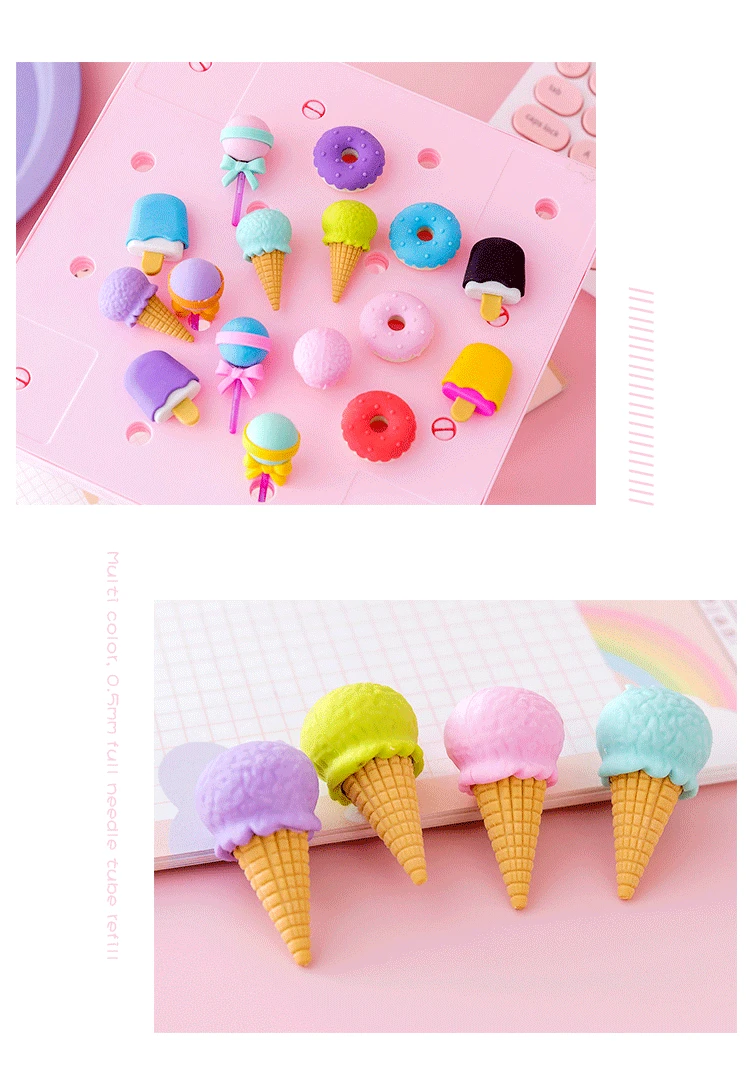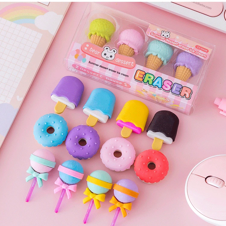 Ластики, набор из 4 предметов, вкусный десертный карандаш, ластик, мини, леденец, мороженое, фруктовый пончик, резина для детей, школьная награда для школьников