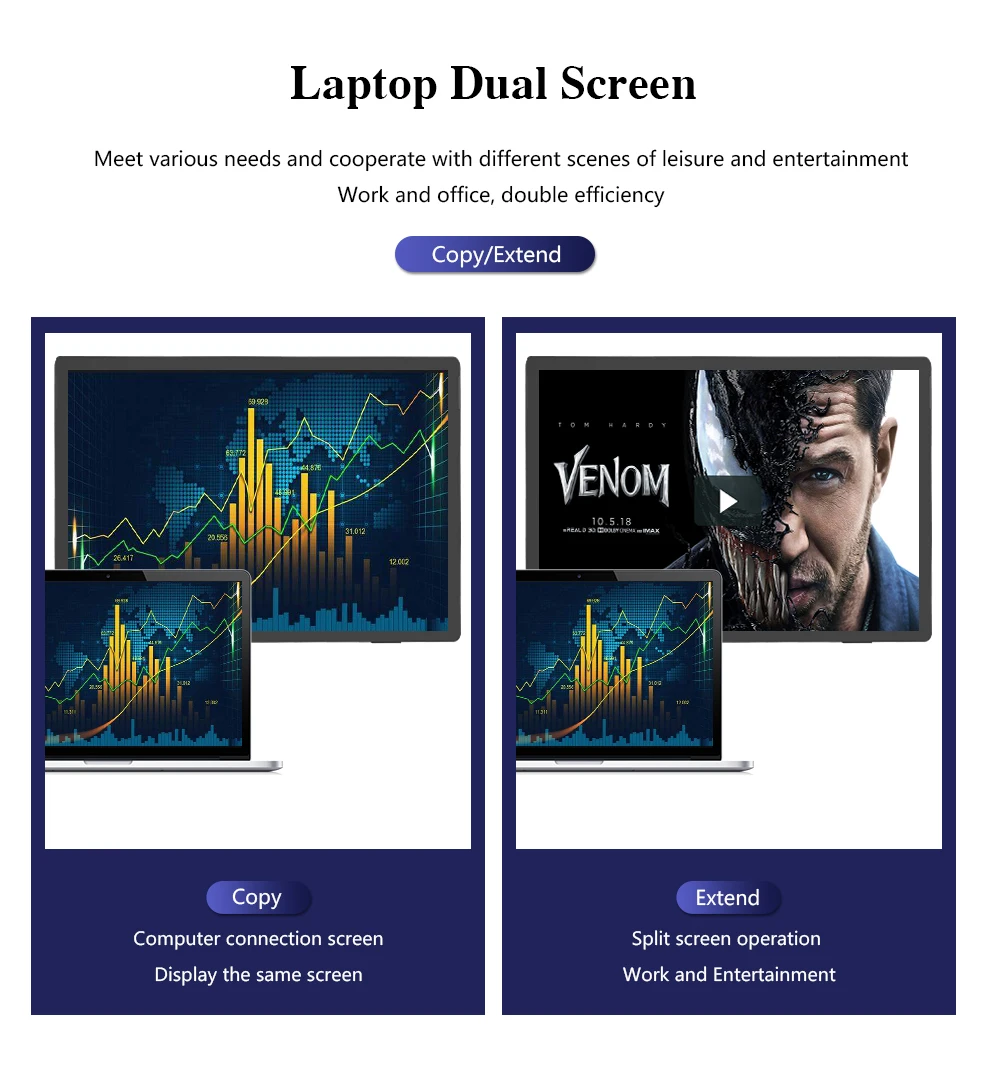 О: обычно все ноутбуки имеют порт HDMI или DP для расширения подключения экрана. Так что просто используйте HDMI-совместимое соединение с нашим монитором в порядке. Также помогает Совместимость с DP и HDMI OTG.