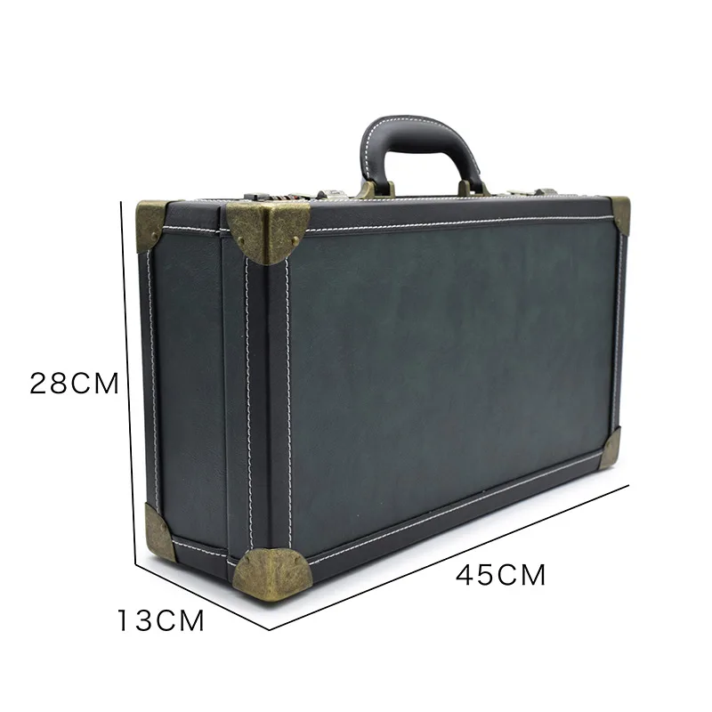 4. Thick leather reinforcement makes the box not deformed and durable. The double code buckle design can better protect the safety of the items in the box.