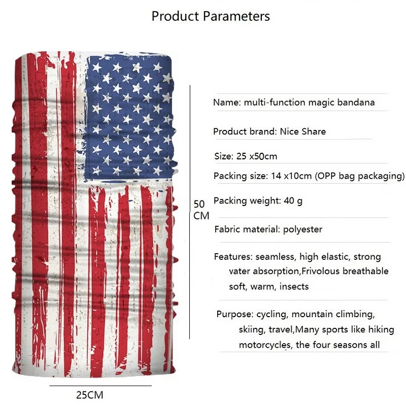 25*50CM Motorcycle Riding Face Mask Hip-hop Skull Bandanas Multifunctional Tube Face Cover