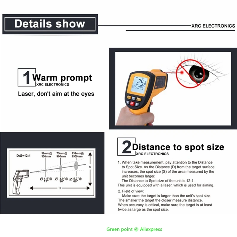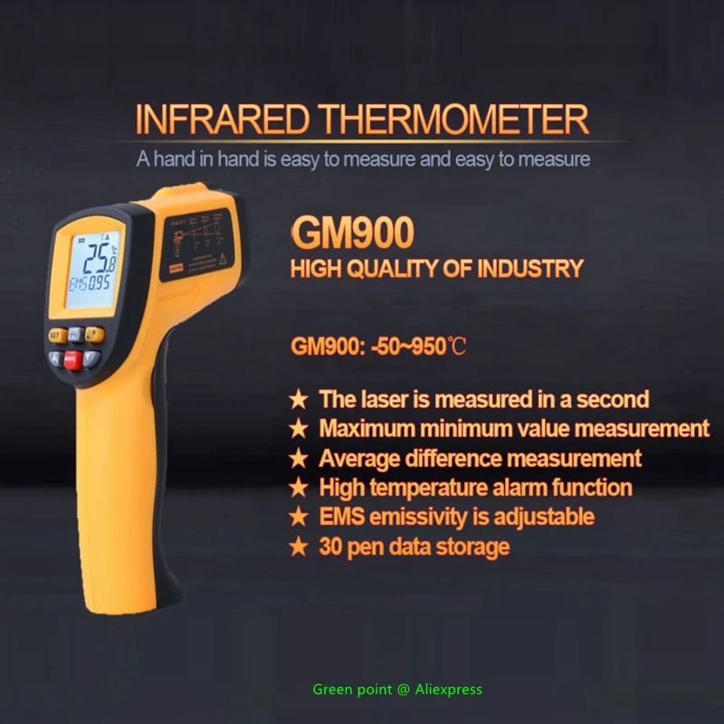 Портативный мини лазерный цифровой инфракрасный термометр GM900 Бесконтактный измеритель температуры-50 ~ 950 ℃ (-58 ~ 1742 ℉) для промышленного тестирования