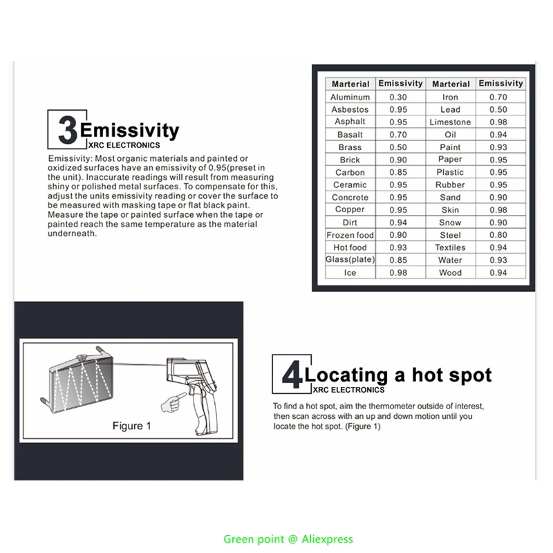 ◆ Излучение: 0,10 ~ 1,00 регулируемая (0,95 предустановка).
